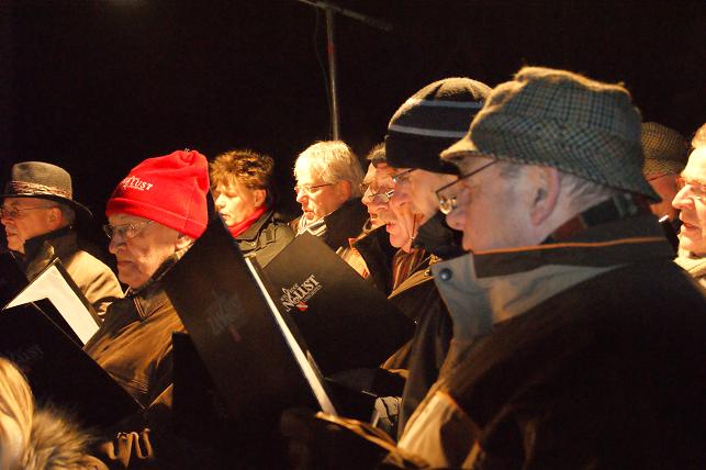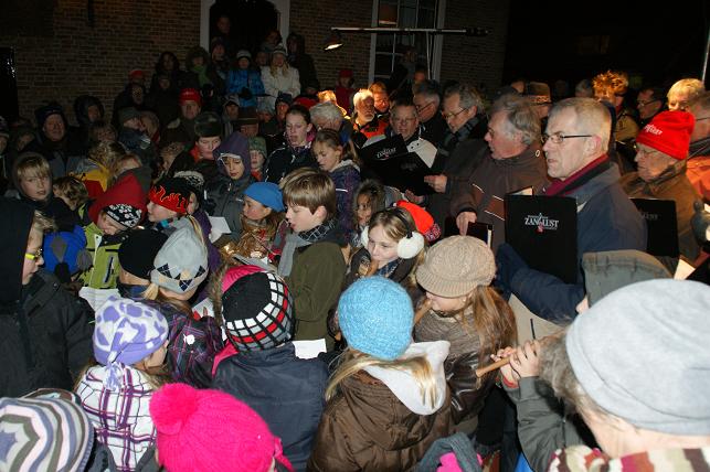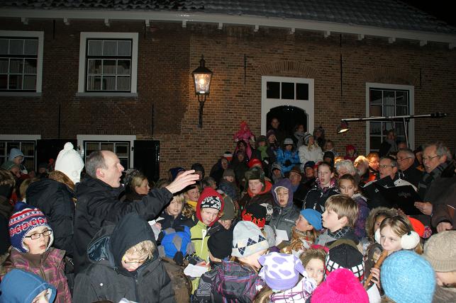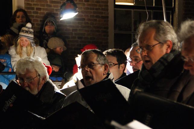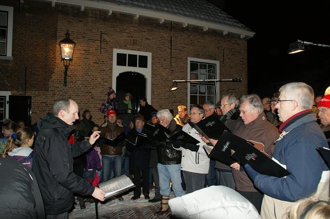 Geplaatst op:24-12-2010 Bijgewerkt op:25-12-2010 00:52 Kerstavond met Mannenkoor ZanglustBron: Tekst en foto's Saskia van den Brink/redactie RSM, ingezonden foto's Petra van den HeuvelHet Linschotense Mannenkoor Zanglust verzorgde traditiegetrouw op Kerstavond, vrijdag 24 december, een openlucht Kerstoptreden in de dorpskern van Linschoten.Dit jaar was er bij de keuze van de liederen speciaal aandacht voor de kinderen, en werden er bekende liederen gezongen zoals ‘Stille Nacht’. De kinderen mochten naar voren komen om mee te zingen. Enkele van deze kinderen speelden op een blokfluit de bekende kerstliederen mee en zorgden voor muzikale begeleiding van het koor. De dirigent van het Mannenkoor Zanglust, Rob Holleman, dirigeerde niet alleen het koor maar ook de vele toegestroomde inwoners van Linschoten en Montfoort.Op deze winterse avond werd er uit volle borst meegezongen. Samen maakten zij er een mooie Kerstavond van!