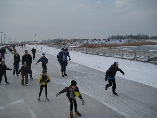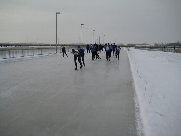 Het was koud genoeg om op deze prachtige baan in de polder onze rondes te kunnen schaatsen en om de warme chocomelk goed te laten smaken.