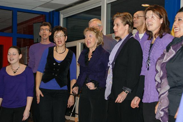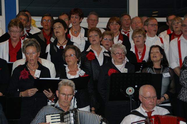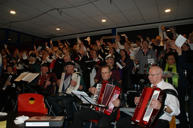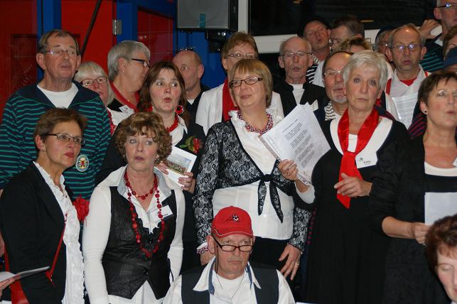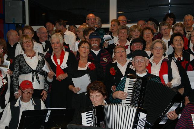 Vervolgens voegden alle vier de koren zich samen op het podium voor de samenzang.