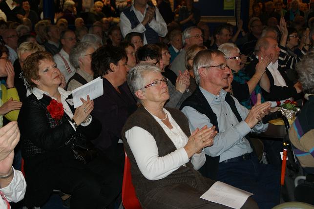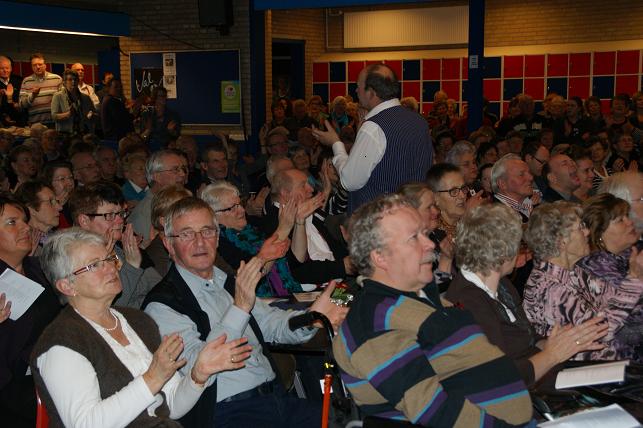 Samen met het publiek zongen zij de liederen ‘Sierra Madre del Sur’, ‘Het Land van Maas en Waal’ en ‘Kleine Café aan de Haven’.