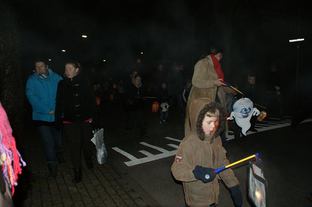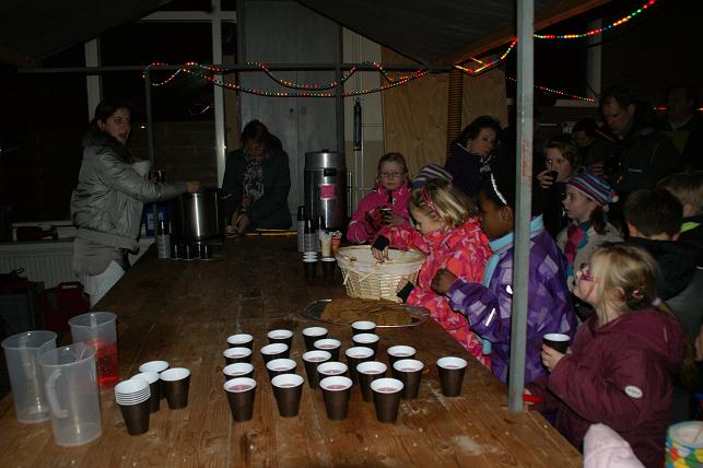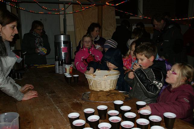 De tocht eindigde bij de brandweerkazerne waar de deelnemers werden getrakteerd op warme chocolademelk en wat lekkers.