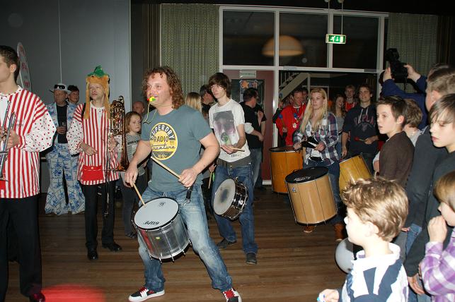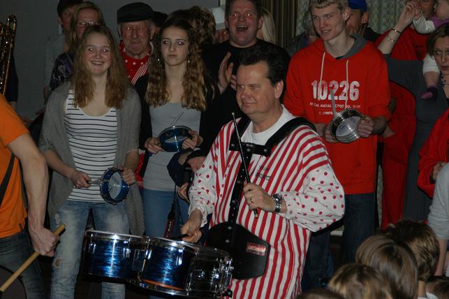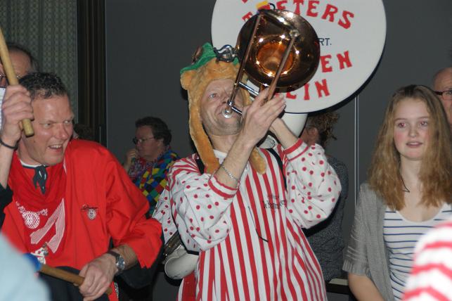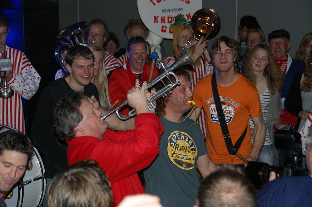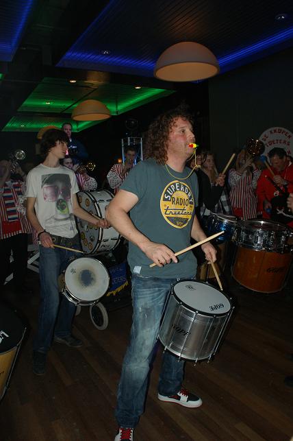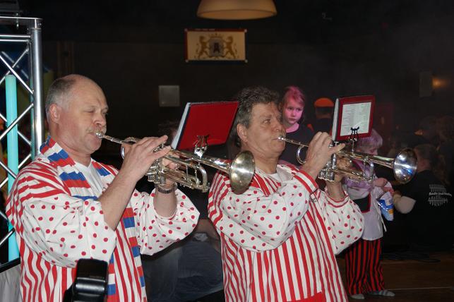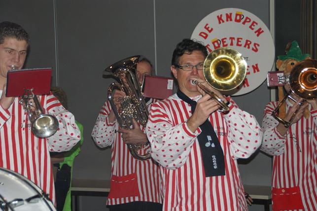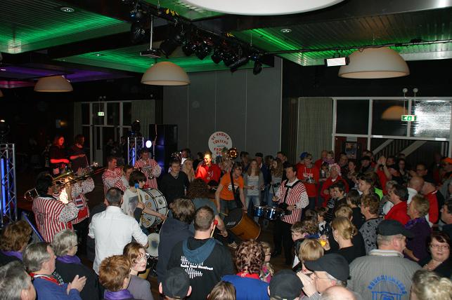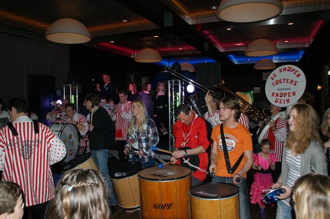Swingende klanken galmden door de grote zaal, de Sambaband voegde zich bij de Knopentoeters.