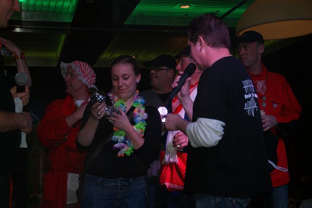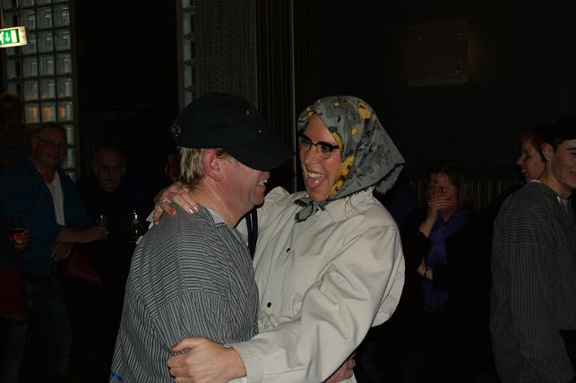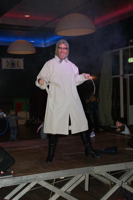 Vervolgens verscheen er een opvallende dame die zich vastklampte aan één van de feestgangers.