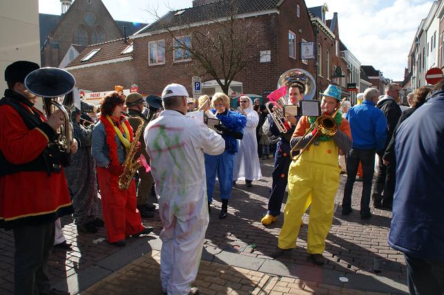De bezoekers worden voor de optocht al vermaakt door muziekverenigingen en blaaskapellen.