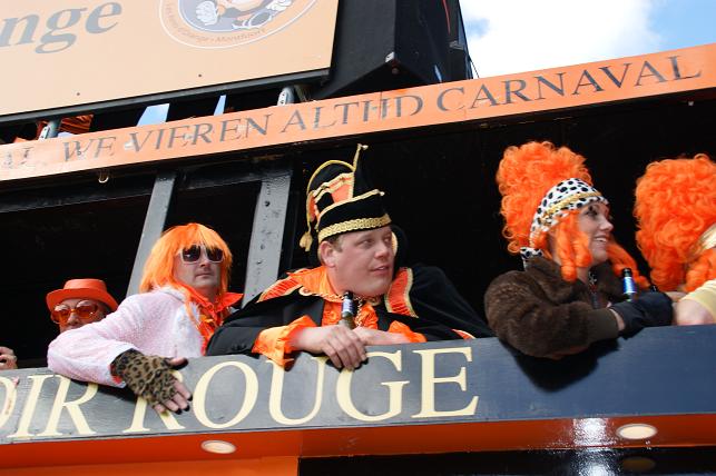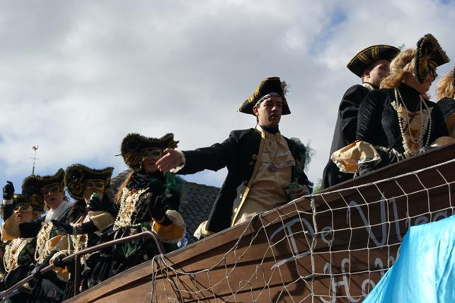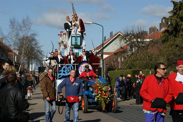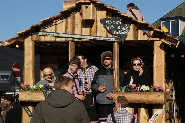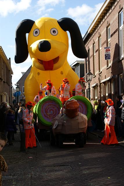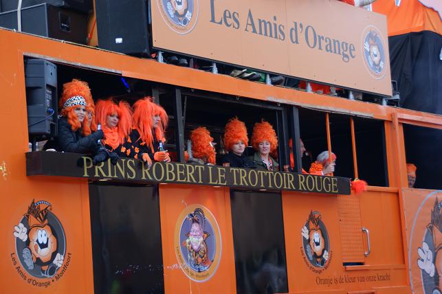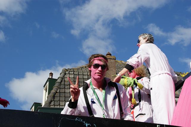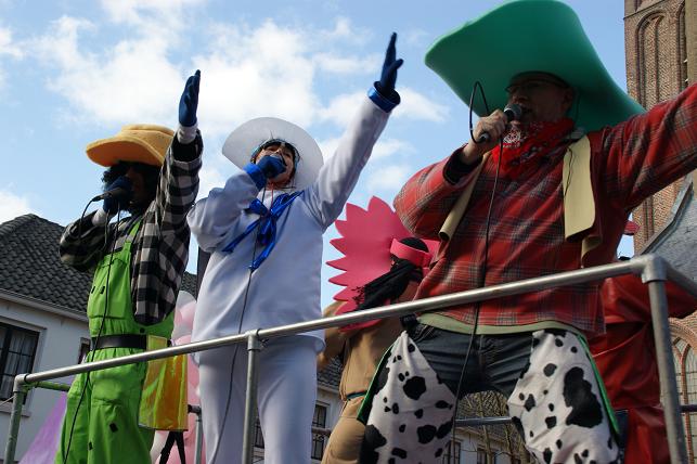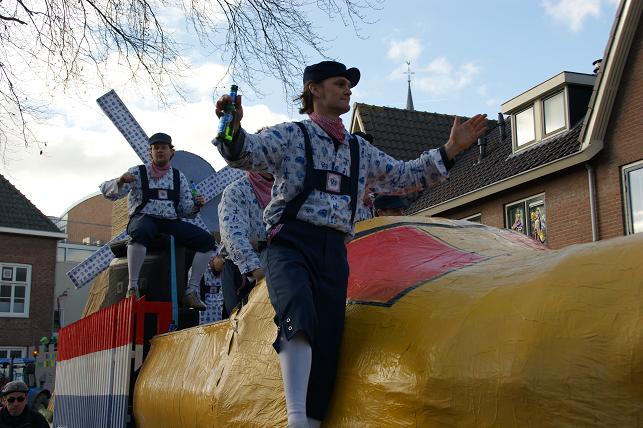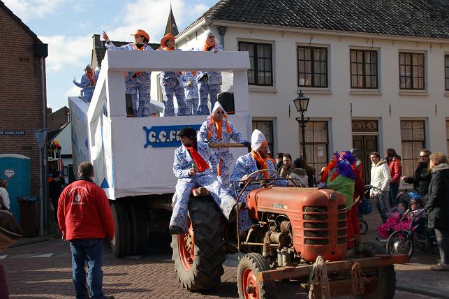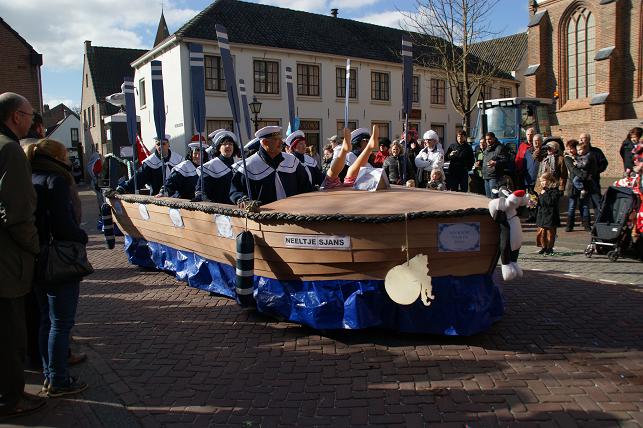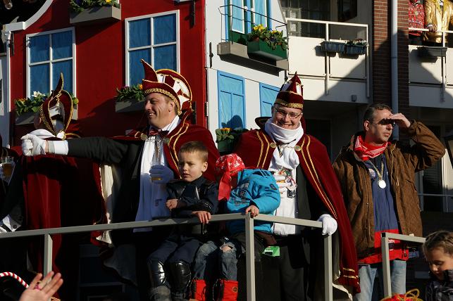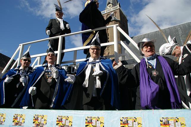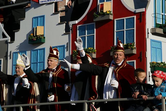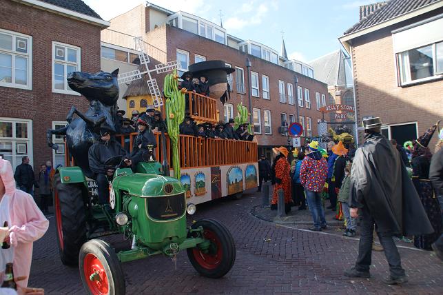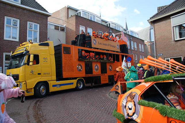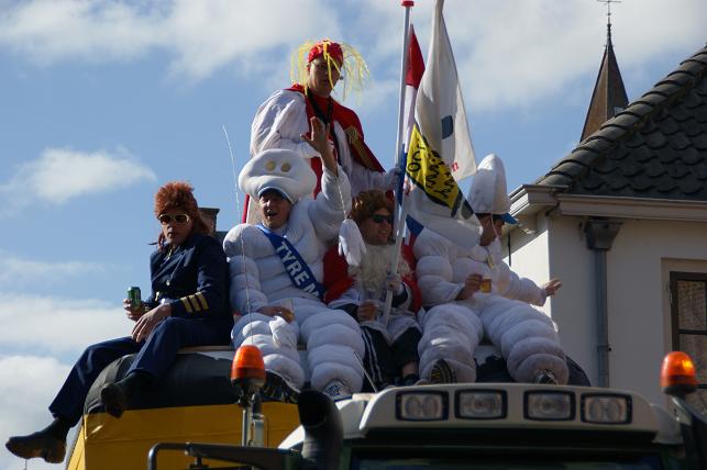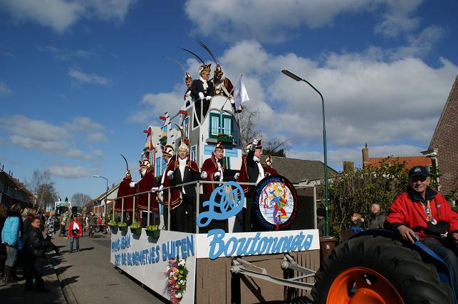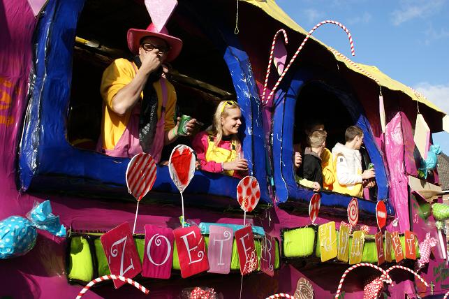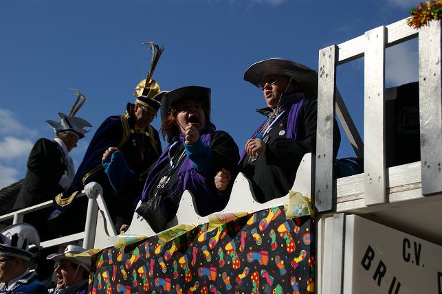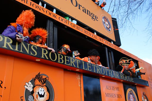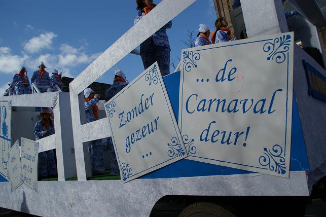 Daar komen de eerste carnavalswagens al aan...met C.V. Les Boutonniers voorop.