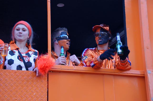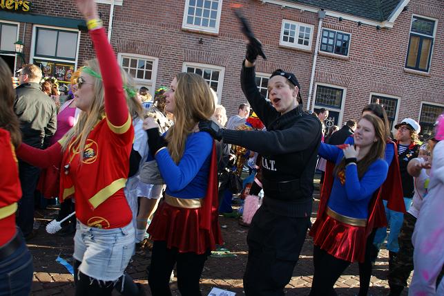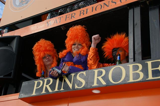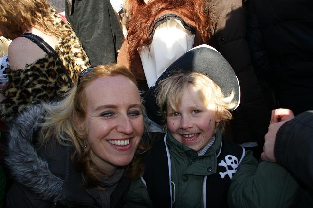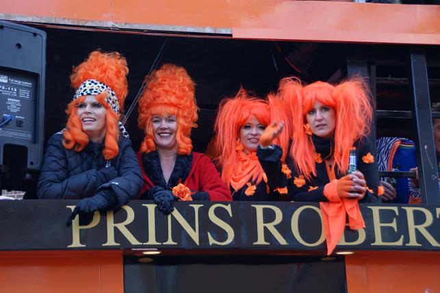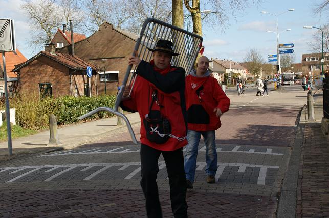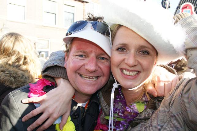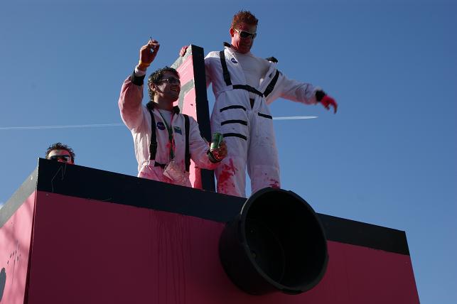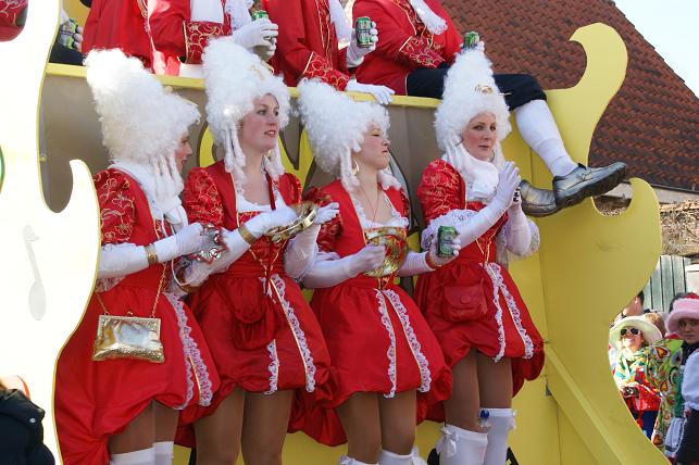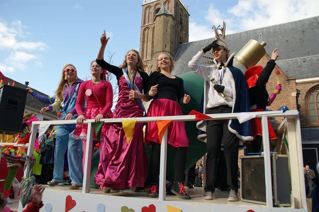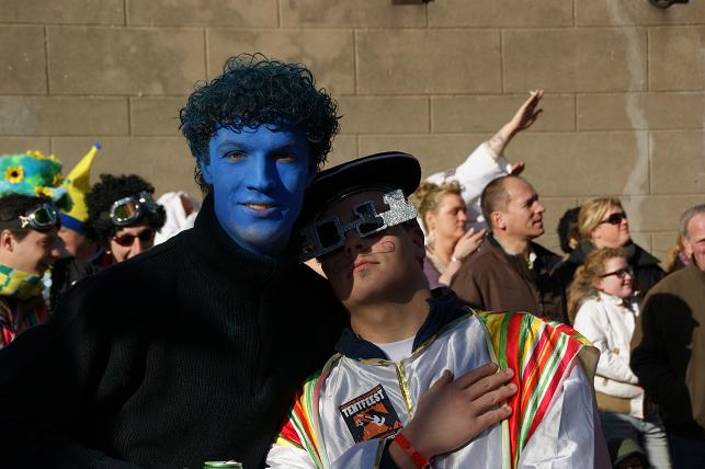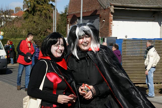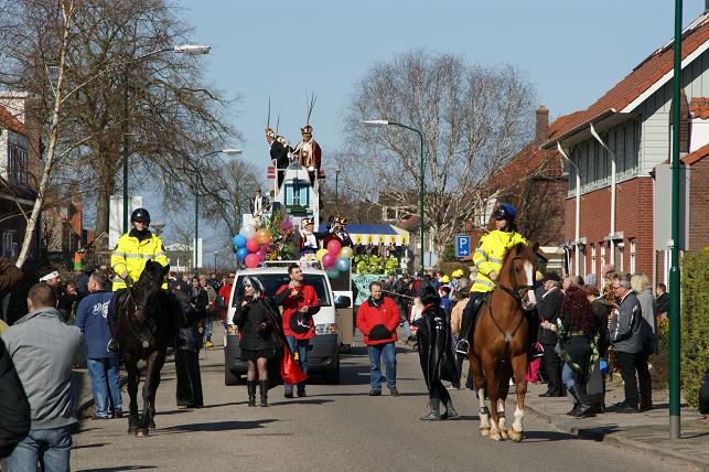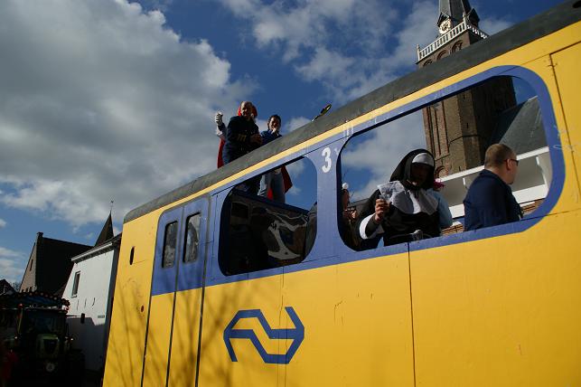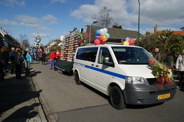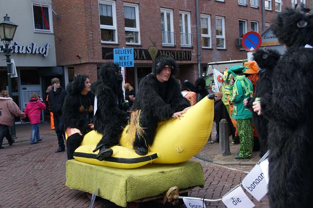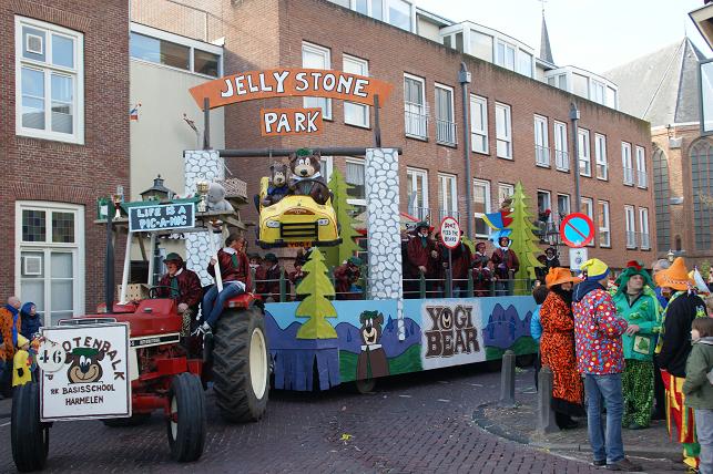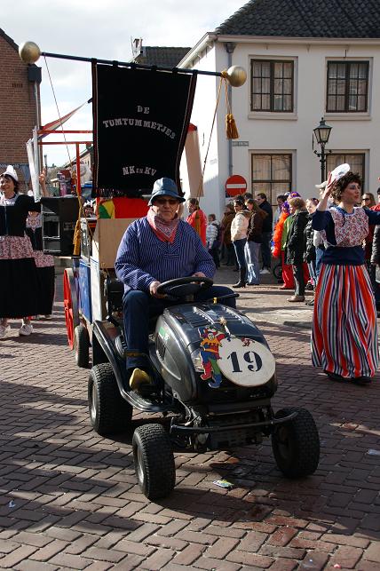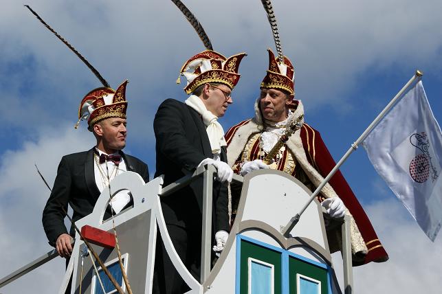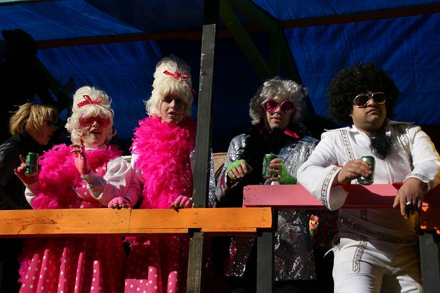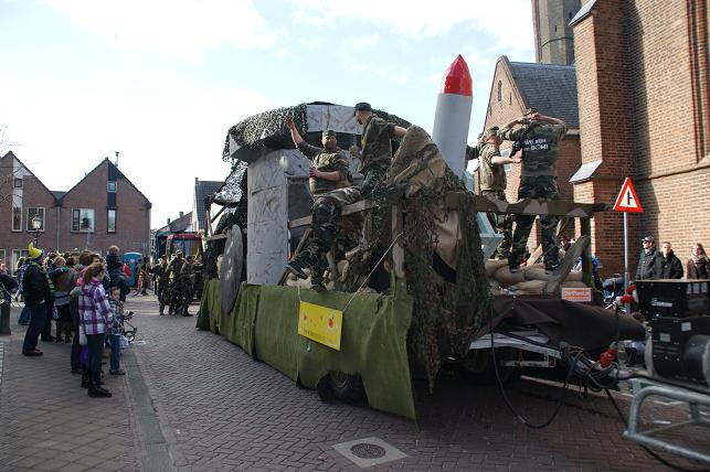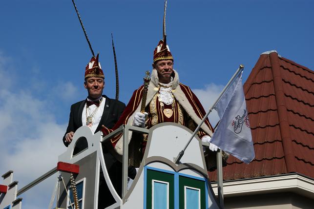 Daar komen de eerste carnavalswagens al aan...met C.V. Les Boutonniers voorop.