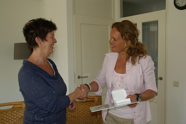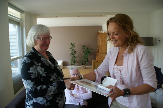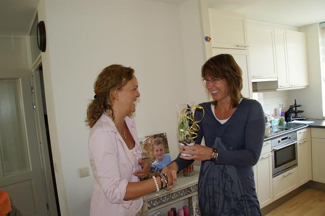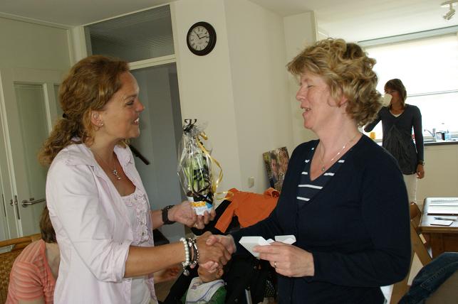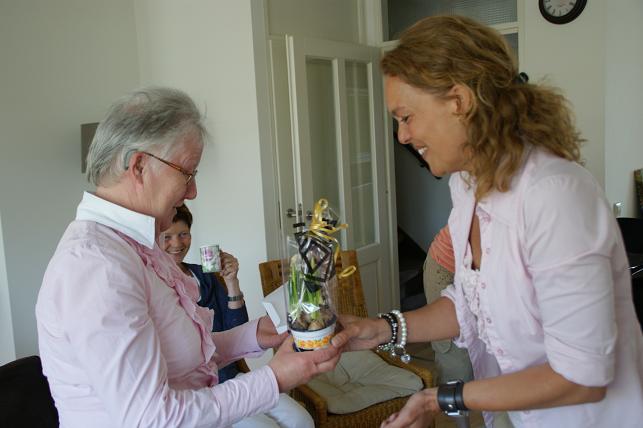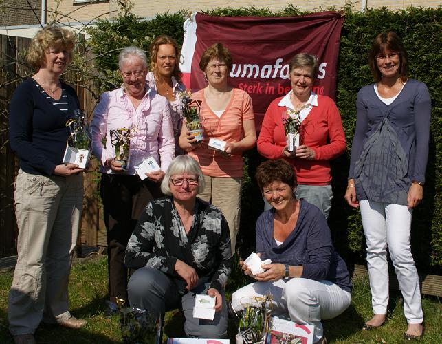 Deze ochtend waren de collectanten uitgenodigd die het langst de collecte voor het Reumafonds in Linschoten lopen. De collectanten werden gehuldigd door Jorien Bosch. Zij kregen een prachtige vergulde boekenlegger, een certificaat en een plantje. Dit waren de collectanten: Mevr. N. van den Brink werd door Jorien Bosch (rechts op de foto) gefeliciteerd voor haar inzet voor het Reumafonds. Zij heeft dit jaar voor de 49ste keer gecollecteerd voor het Reumafonds. Mevr. D. Verweij werd gefeliciteerd. Zij collecteerde al 39 keer. Mevr. Van Essen collecteerde al 20 keer. Mevr. van Eck collecteerde al 20 keer. Mevr. J. van Zoest collecteerde al 13 keer. Mevr. Van Agthoven collecteerde al 19 keer. Jorien Bosch bedankt Astrid van der Wind voor haar inzet om de collecte in Linschoten te organiseren. De aanwezige collectanten, Astrid van der Wind/organisatrice Reumafonds collecte Linschoten en Jorien Bosch/regio coördinator Reumafonds.