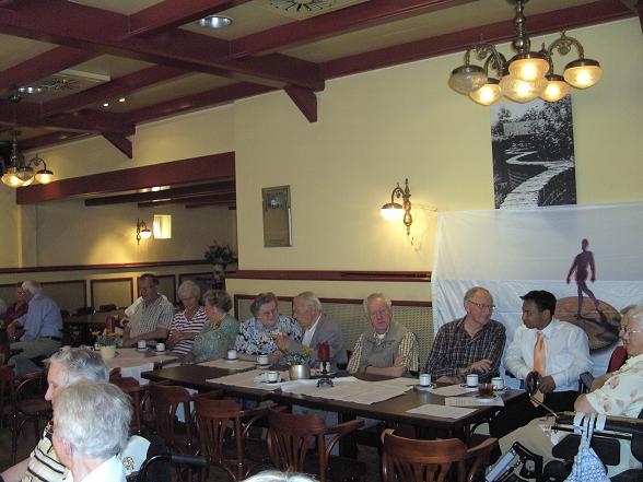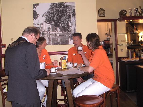 Burgemeester Jansen opende deze ochtend in 'Het Wapen van Linschoten en Snelrewaard'. Er werd begonnen met koffie en een oranjegebakje.