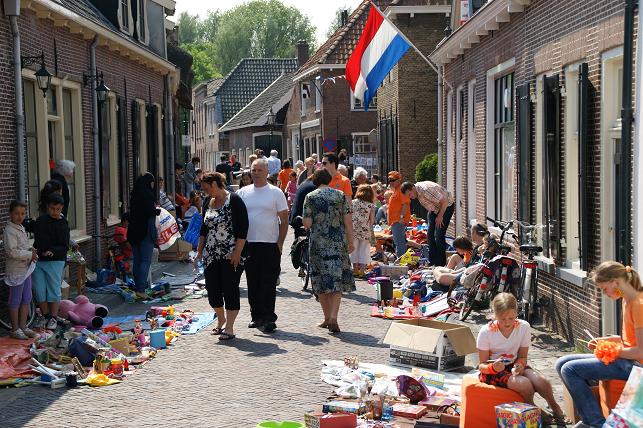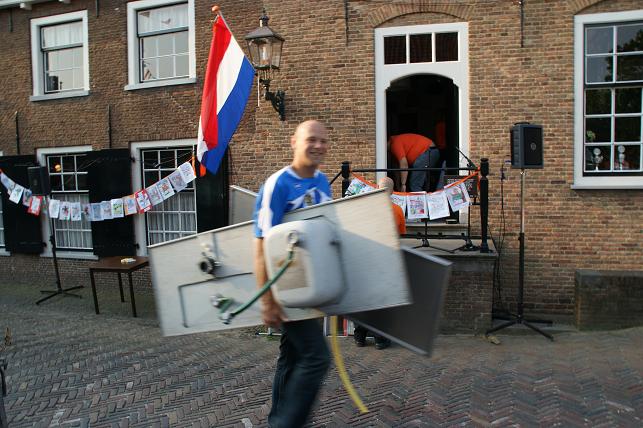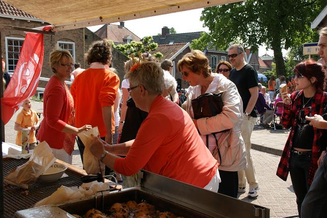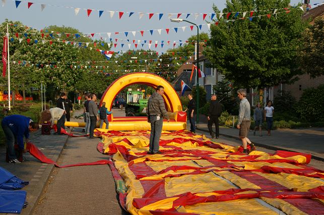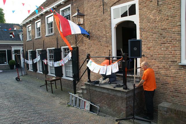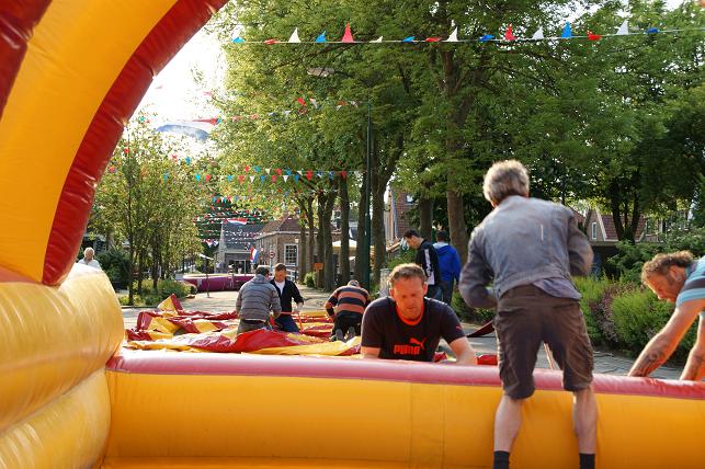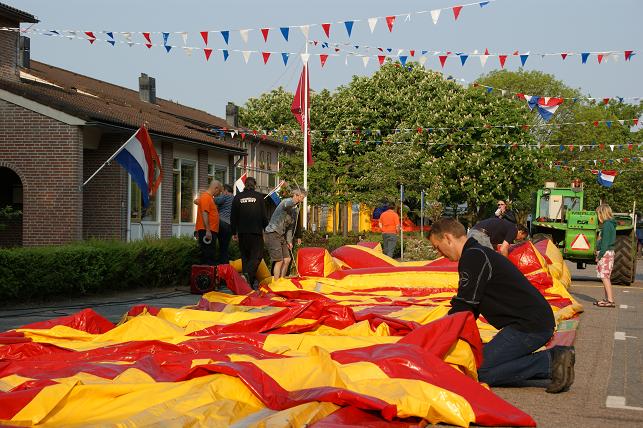 Vrijwilligers van het Oranje Comité Linschoten waren al vroeg in de ochtend bezig met de opbouw voor deze feestelijke dag.