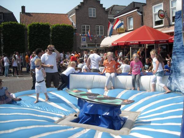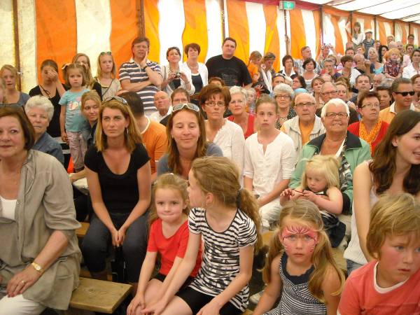 Het Kasteelplein in Montfoort kleurde oranje zaterdagmorgen 30 april. Honderden kinderen en hun ouders, de meesten in prachtige “Koninginnedagkleding en schmink,” verzamelden zich rond de oude kastanjebomen.
