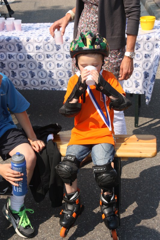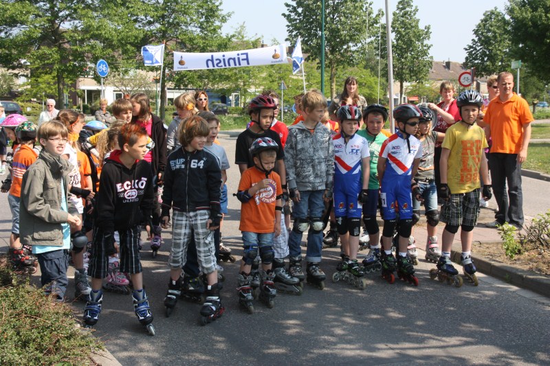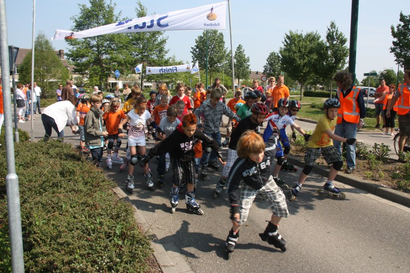 Geplaatst op:02-05-2011 Bijgewerkt op:02-05-2011 08:32 3e Montfoortse skeelerronde op Koninginnedag 2011, georganiseerd door de Montfoortse IJsclub.Bron: Marja Damme, Montfoortse IJsclubOpnieuw is op Koninginnedag de skeelerronde van Montfoort gehouden, waar in totaal een kleine 100 sportievelingen aan de start verschenen. Het eerste startschot werd gegeven om 12.00 uur, het tweede volgde om 12.45 uur. Al ruim van tevoren werd het parcours verkend door menig skeeler- en skate/waveboard-liefhebber. Gelukkig werden we de gehele dag vergezeld door het “oranje” zonnetje en zo waren de omstandigheden optimaal voor de 3e skeelerronde van Montfoort. Voor het skeeleren en waveboarden is het een lust om op zo ’n prachtige, aangename en royale asfaltbaan menig rondje te kunnen maken. De baan is geheel autovrij en wordt bewaakt door een grote groep vrijwilligers. Deze groep trouwe helpers willen hierbij ook graag hartelijk bedanken voor hun inzet! Het enthousiaste en inzet onder de deelnemers was enorm! Natuurlijk was er na afloop voor alle deelnemers een drankje om de eerste dorst te lessen en een welverdiende medaille. Wij, de Montfoortse IJsclubleden, kijken dan ook terug op een zeer geslaagde en gezellige skeelerhappening en hopen volgend jaar weer net zoveel (of misschien nog meer) enthousiastelingen aan de start te mogen begroeten. Voor een compleet overzicht van alle foto's, zie de website www.montfoortseijsclub.nl