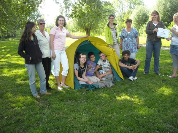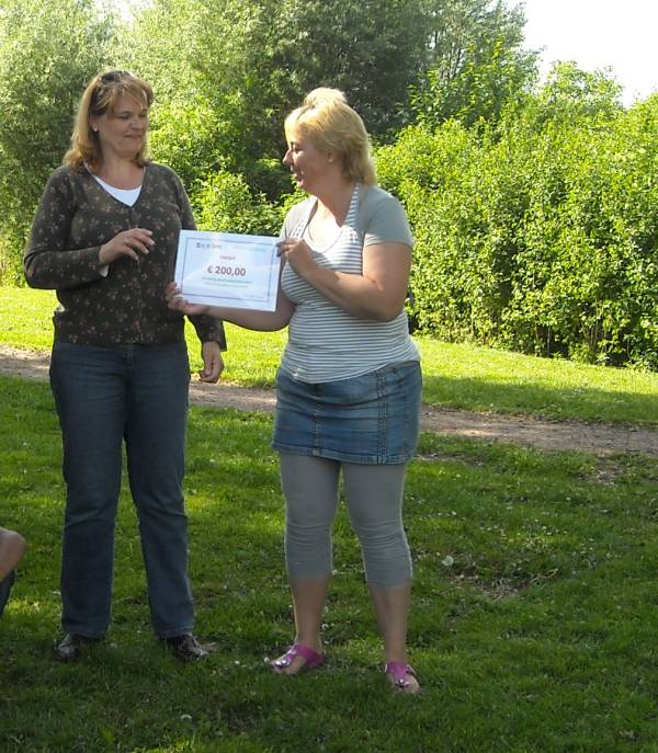 Woensdag overhandigde Miranda Stekelenburg de cheque van € 200,00 aan Stichting Sesam. Op de vraag aan de aanwezige kinderen waaraan dit geld zou kunnen worden besteed zei Jeffrey: “Een wereldreis.” Ralph dacht dat er iets belangrijks mee zou kunnen worden gedaan: “Sparen voor nieuw speelgoed, en dan samen gaan shoppen.”
