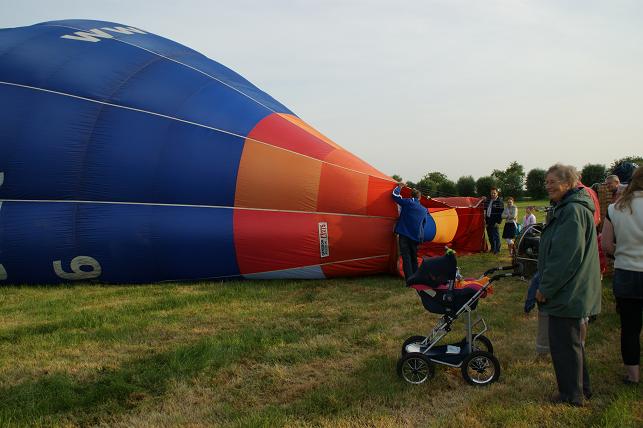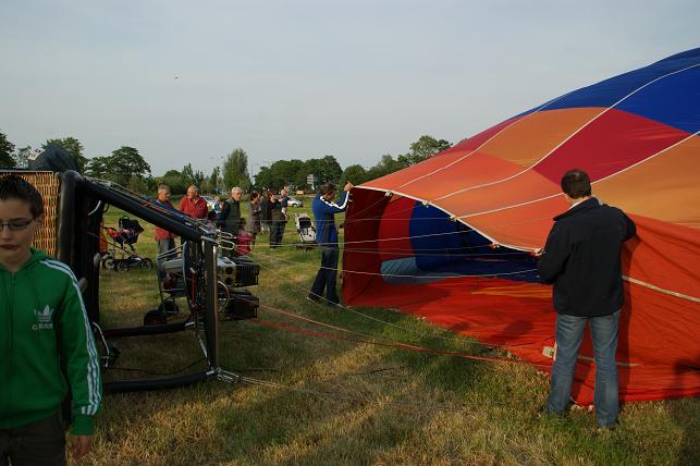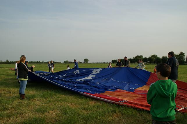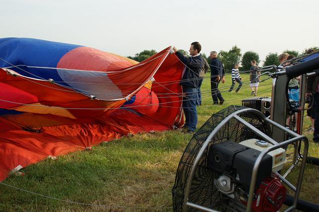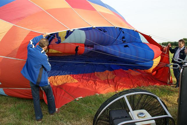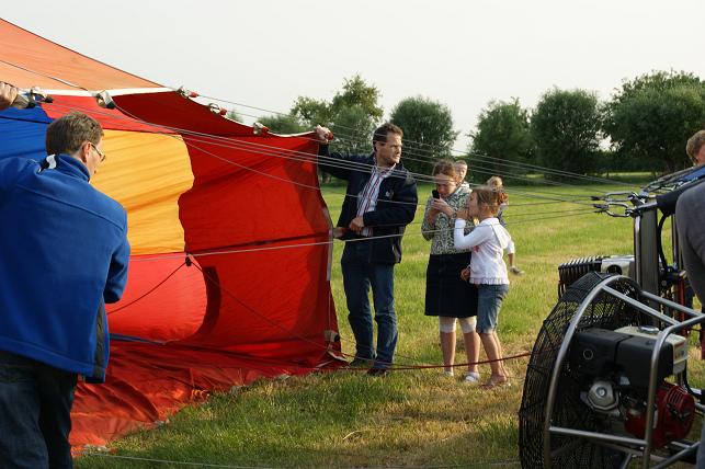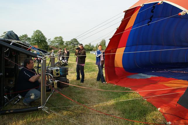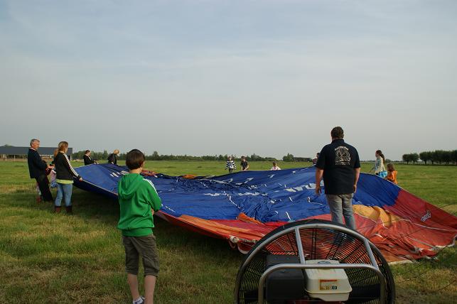 Na een korte uitleg over de ballonvaart werden de passagiers en omstanders aan het werk gezet om de ballon klaar te maken voor vertrek.