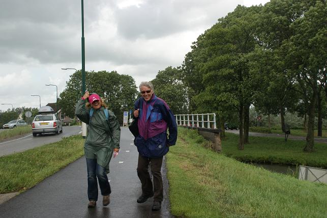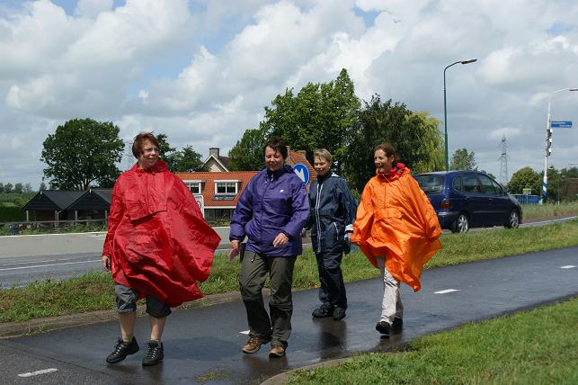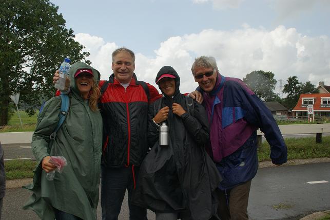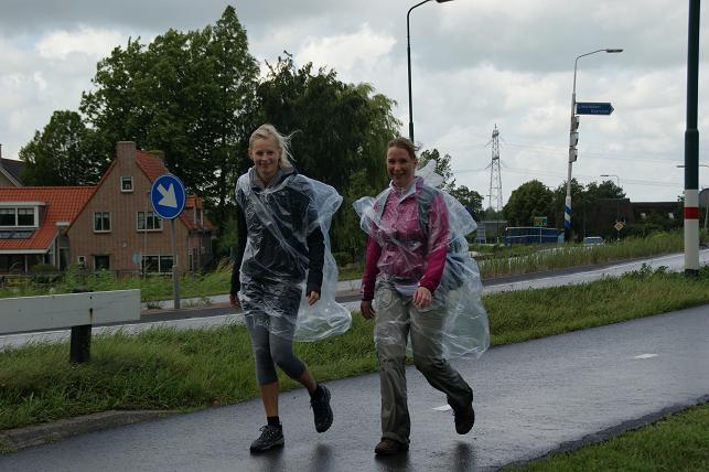 Behalve hardlopen kon men ook deelnemen aan een wandeltocht. De wandelaars trotseerden de vele regenbuien en gehuld in regenponcho's liepen zij ook enkele kilometers door Linschoten.
