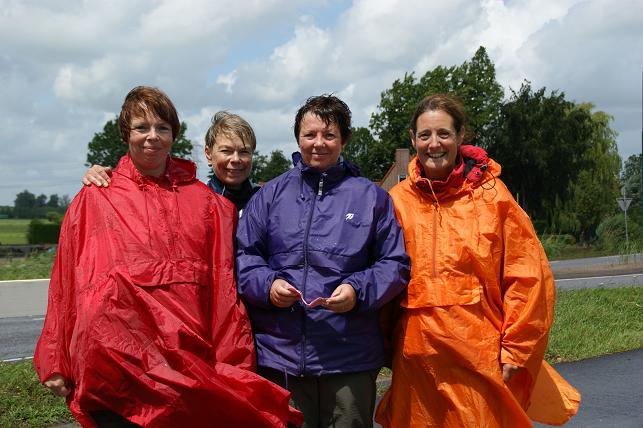 Vier enthousiaste deelneemsters aan de wandeltocht.