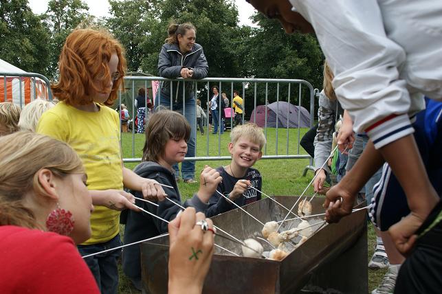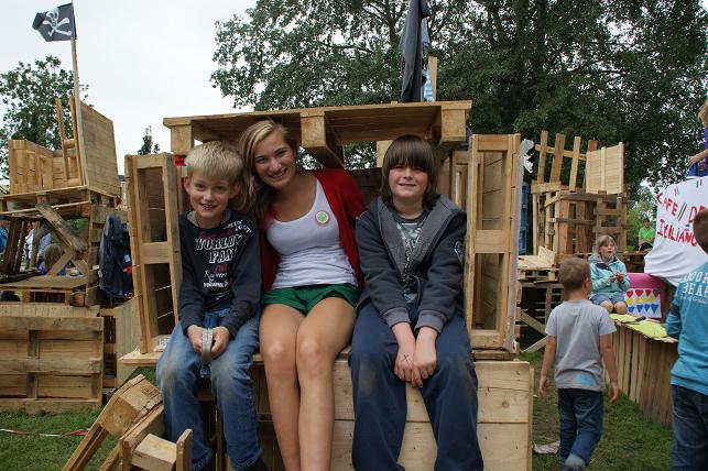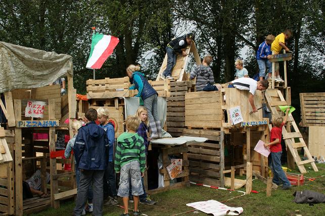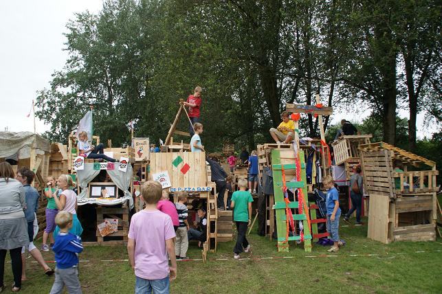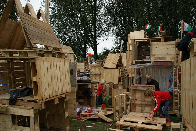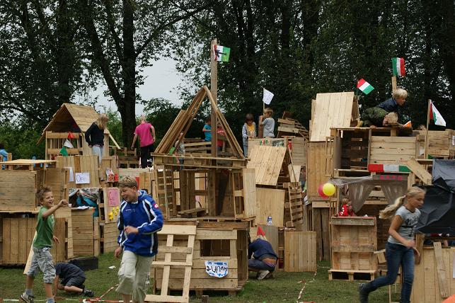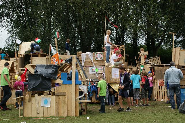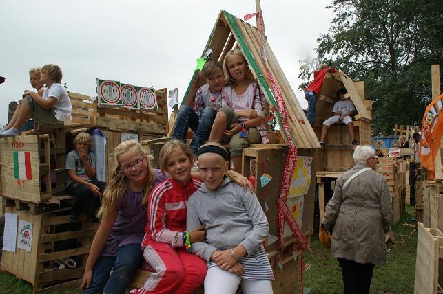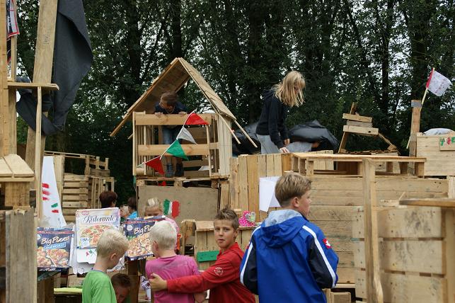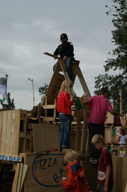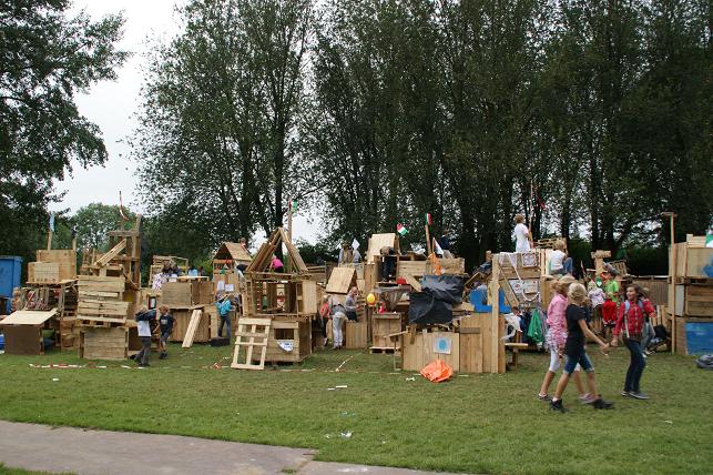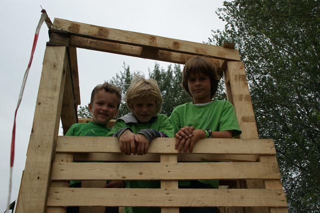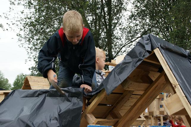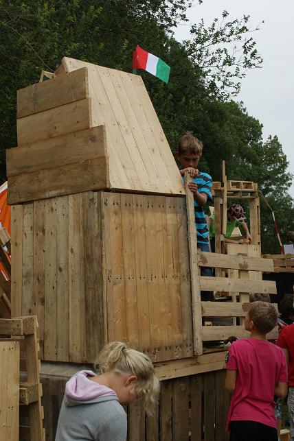 Op donderdag werd er weer volop getimmerd aan de hutten en ook de andere activiteiten trokken weer vele kinderen.