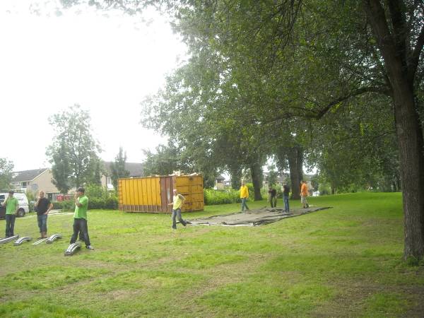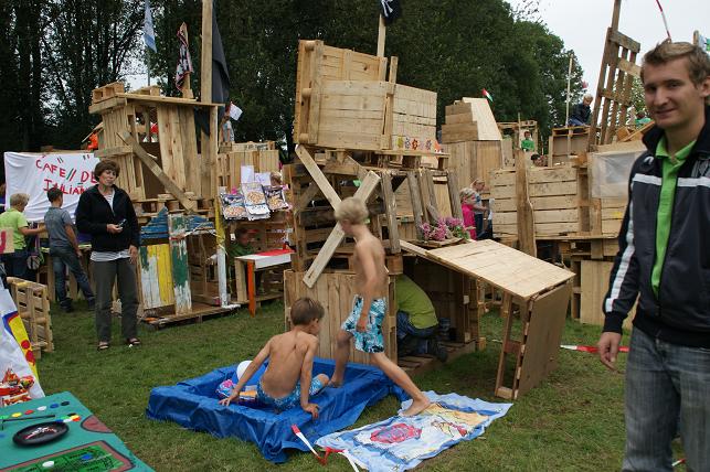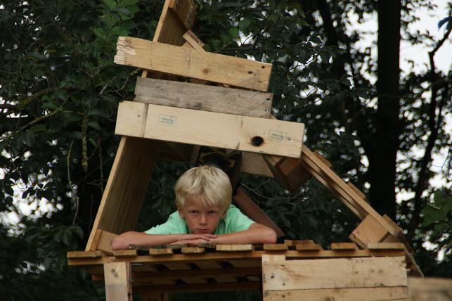 De jeugd was erg creatief, er werd zelfs een hut met buitenbad gebouwd. |  |  |  |  |  | Boven in de hut bijkomen van al dat timmerwerk en genieten van al dat moois om je heen.  Vrijdag werd alles weer opgeruimd |  |  En kon er worden gesprongen en gegleden! |