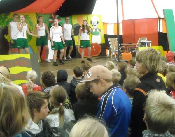 Geplaatst op:08-08-2011 Bijgewerkt op:12-08-2011 13:39 VOM-nieuwsBron: Verhaal VOM, foto's RSM: Nettie Kuijer en Saskia van den Brink Tijdens de VOM-week konden kinderen plezier maken op het VOM terrein in het Montfoortse park.Verhaal camping Biscotti: Maandagmorgen was het helaas niet zo mooi weer. Daarom is oom Samuel lekker op vakantie gegaan. Zijn nichtje Roma is samen met haar hartsvriendin Filia overgekomen uit Nederland om op de camping te passen. Oom Samuel is super trots op zijn 5 sterren camping, en hij vertrouwt erop dat hij zijn camping met een gerust hart achter kan laten bij Roma en Filia. Ook de knappe klusjesman Luigi is deze week op de camping te vinden. Filia is tot over de oren verliefd op Luigi en ze is elke keer als hij in de buurt is een beetje zenuwachtig! De groepjes zijn voorgesteld. Dat zijn: de Etna's, de Bella's en de Floranen. In de middag waren er drie sterren verdwenen. Wie heeft ze meegenomen?