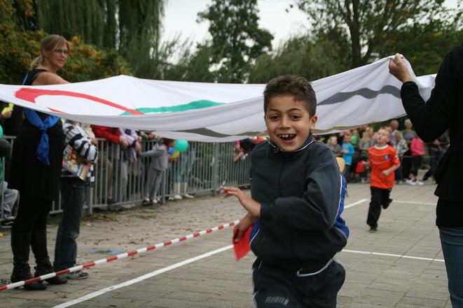 Ieder afgelegd rondje werd op de sponsorkaart aangetekend. Zo was ieder kwartier een andere groep aan de beurt. Met rode wangen en bezwete gezichten kwamen ze over de finish. Iedereen verdiende een heerlijke medaille.