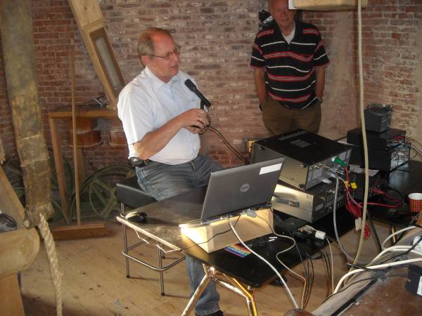 Op de open dag die Molen “de Valk” en zendamateurvereniging Veron organiseerden zaterdag 1 oktober werd hard gewerkt door de molenaars en de zendamateurs. De molenaar sjouwde de zakken meel naar beneden, om daar te gaan zeven en wegen, want stof is een vijand van de gevoelige apparatuur.