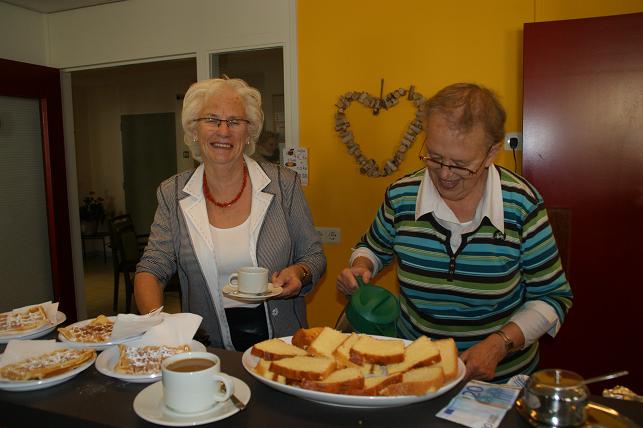 Wie uitgekeken was bij de tafels met koopwaar kon een gokje wagen bij de verloting of de middag afsluiten met een kopje koffie of thee met zelfgebakken wafels en cake.