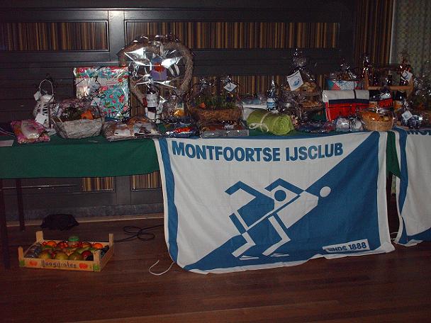 Geplaatst op:06-11-2011 Bijgewerkt op:06-11-2011 16:36 Feestavond Montfoortse IJsclubBron: Redactie RSM Aad van der VeenOp zaterdag 5 november was weer de jaarlijkse feestavond van de Montfoortse IJsclub. Deze traditionele avond is tevens de opening van het nieuwe winterseizoen. Ondanks de extreem hoge temperatuur van dit moment werd de avond wederom druk bezocht door de leden. Voorzitter Ton de Jong opende de avond met een welkom en meldde een reeks van activiteiten voor zowel jong als oud, die de komende tijd gepland staan. Hopelijk kan hij volgend jaar ook melding maken van een geplande landijsbaan in het park. Daarna kon een start gemaakt worden met het feest en konden de beentjes even worden losgemaakt onder begeleiding van een uitstekend duo, de Sunny Sound. Zoals gebruikelijk vind er op deze avond ook een gigantische loterij plaats, waar vele (gesponsorde) prijzen zijn te winnen. Bijna iedereen ging dan ook wel met een leuke prijs huiswaarts, maar niet nadat er nog vele uren werd bijgepraat en gedanst. Indien u ook eens zo, n geweldige avond wil meemaken, of wilt deelnemen aan een van de andere activiteiten, neem dan contact op met de IJsclub via hun website: http://www.montfoortseijsclub.nl of bel met het secretariaat onder nummer 0348 474063  | | De voorzitter Ton de Jong opent met een schuine blijk op de prijzentafel |  |  | | Eevn bijpraten |  | | De borden voor de alternatieve elfstedentocht zijn vernieuwd en gereed |  |  | | De beentjes weer even losmaken voor het komende seizoen |  | | Onder leiding van een prima duo "De Sunny Sound" |  | | Iedereen op de dansvloer |  |  |  |  |  | | Of gewoon weer even bijkletsen |  | | Terwijl anderen bleven dansen |  | | De loten verkoop werd gestart |  |