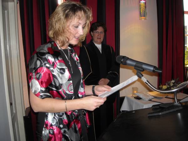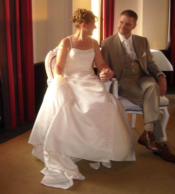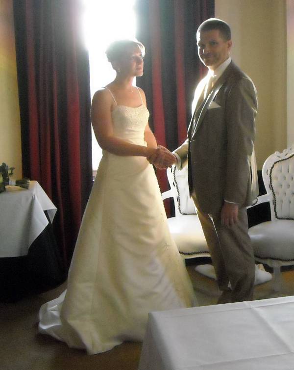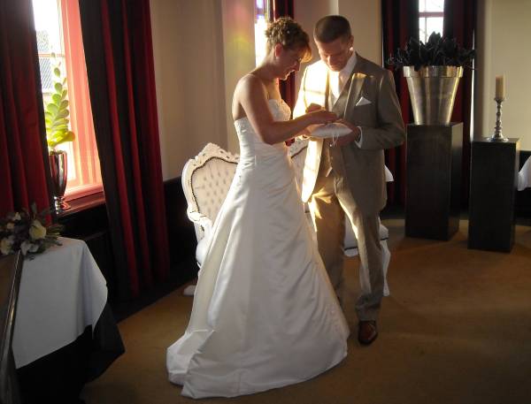 In het kasteel te Montfoort werd een mooie trouwceremonie gehouden. Ambtenaar van de burgerlijke stand Aafke Voet hield een mooie speech, waarin ze inging op al die regels waaraan de in Roemenie geboren Sawa moest voldoen. “Liefde maakt een sprookje van het normale leven, en is universeel,” zei de trouwambtenaar.
