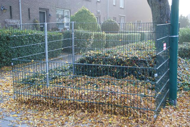 In veel plaatsen zijn er draadkooien geplaatst waar men het overtollig blad kwijt kan.