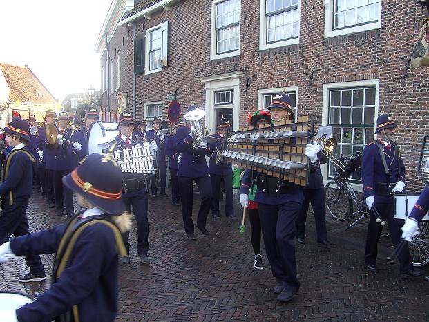 Onder begeleiding van muziekvereniging Linfano op weg naar De Brede Vaart.