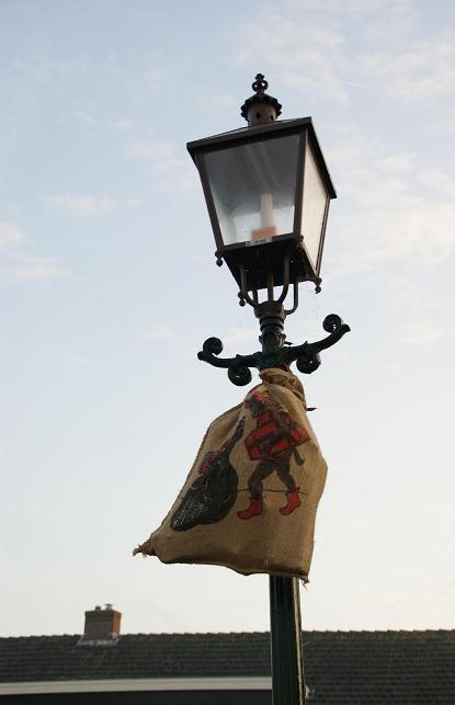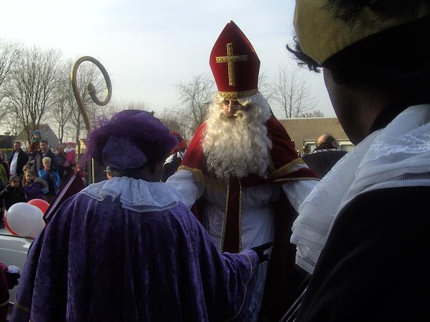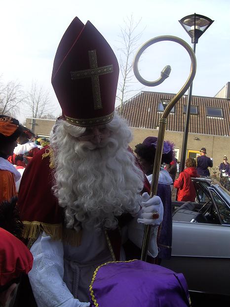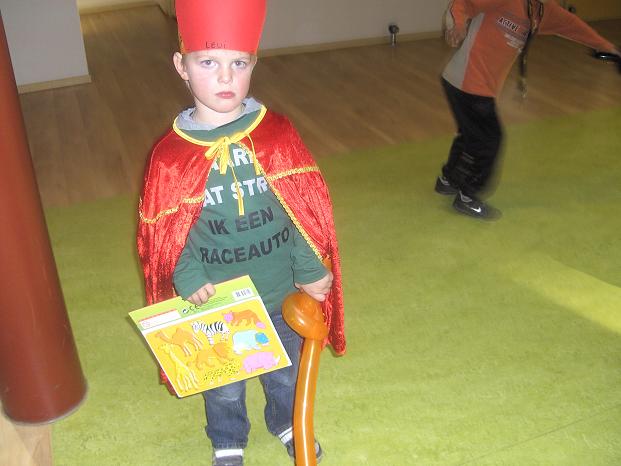 ...met een mijter en de staf van Sinterklaas. Maar waar blijft Sinterklaas...