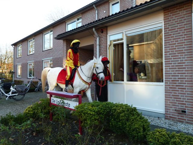 Woensdagmiddag 30 november brachten Sinterklaas, twee Zwarte Pieten en het paard van Sinterklaas een bezoek aan de bewoners van verzorgingshuis De Lindescote in Linschoten.