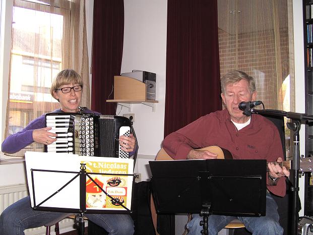 Er werden Sinterklaasliedjes gezongen met begeleiding op onder andere een gitaar en accordeon.