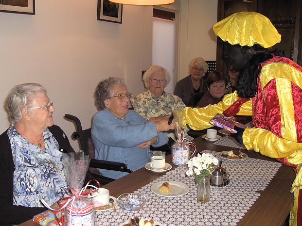 De bewoners werden verwend met cadeautjes. Het werd een gezellige middag.