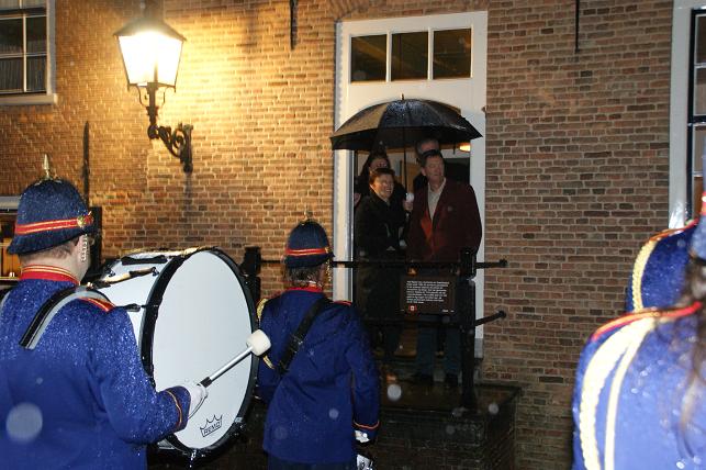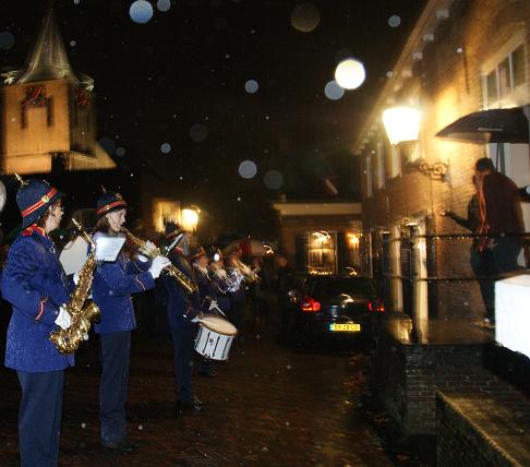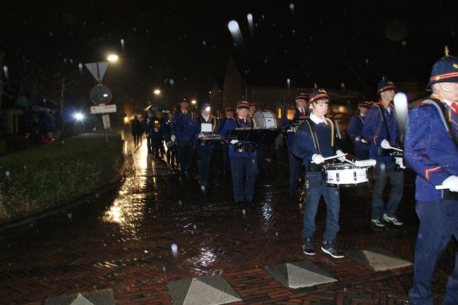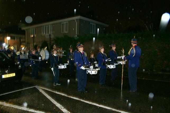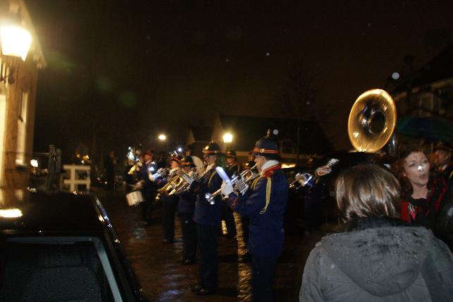 Om 20:00 uur vertrok de fanfare met daarachter de vrienden en familie door de Jacob Barneveldstraat en de Dorpstraat op weg naar Het Wapen van Linschoten.