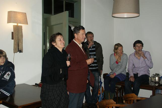 Het gezin Kautz en het team van de tandartspraktijk vierden dit jubileum met een etentje in de opkamer van Het Wapen van Linschoten. Er stond echter nog een verrassing op het programma voor Hank en Ingrid. Terwijl zij rustig zaten te eten verzamelden familie, vrienden en muziekvereniging Linfano zich bij de tandartspraktijk.