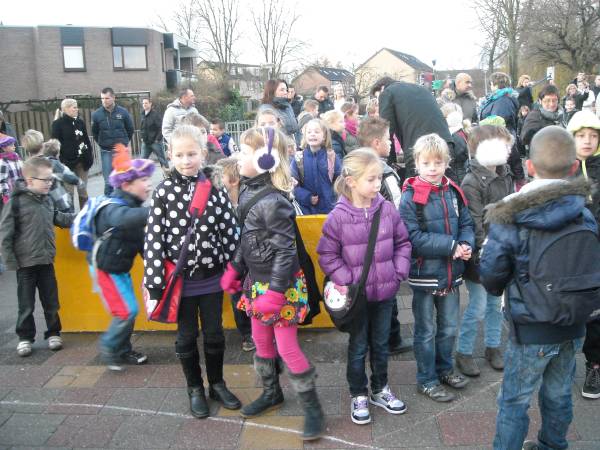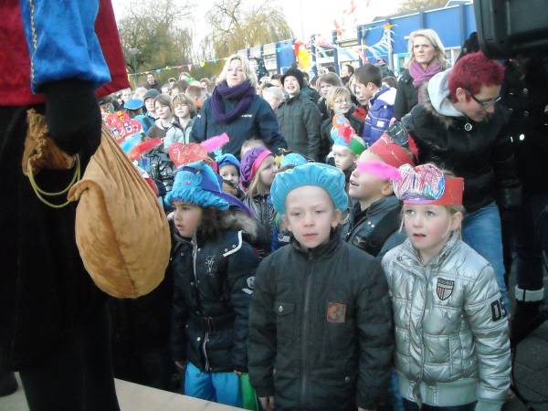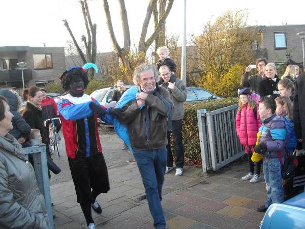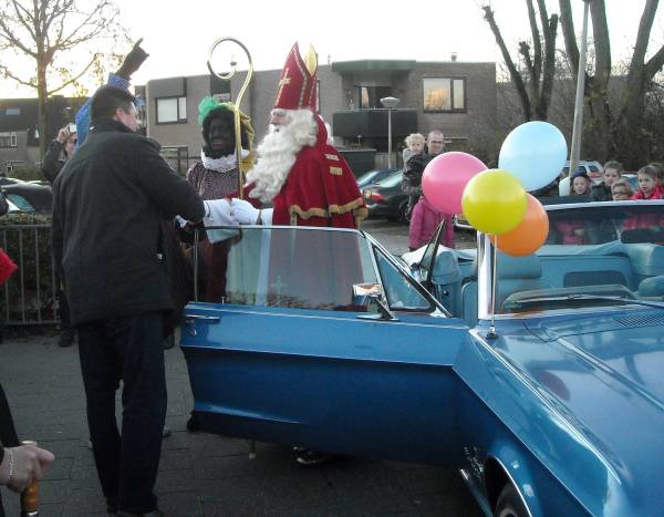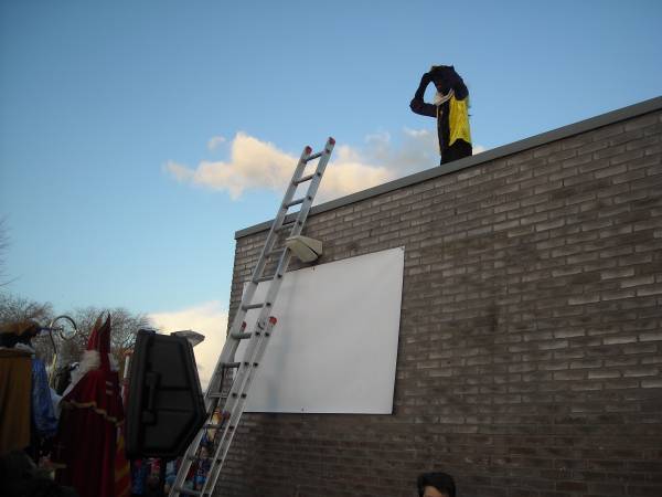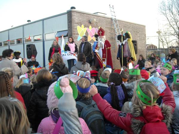 | Na vele jaren van trouwe dienst is het oude logo van de Howiblo maandag 5 december vervangen en het nieuwe onthuld. Dit gebeurde op een feestelijke, ludieke manier tijdens het verwelkomen van Sinterklaas. De groepen kinderen waren slim over de speelplaats verdeeld, zodat ieder goed kon zien wat er allemaal gebeurde. Een open oldtimer met chauffeur bracht Sinterklaas en zijn Pieten op het schoolplein, waar ze warm werden onthaald. Eerst was er commotie over de verdwenen schoolvlag. Gelukkig kon een van de pieten, vanaf het dak, al snel de dader vinden: er liep een verdacht persoon rond! Gelukkig bleek het vrij onschuldig, het was directeur Harrie Bode die de vlag had veroverd..  | Zwarte Piet hielp Harrie met het onthullen van het nieuwe logo: drie kleurige vlinders. “Dieren die sprankelend door het leven gaan,” zei Harrie. Ze verbeelden ook de drie-eenheid, en de drie wijken waar de kinderen wonen die hier op school gaan: Hofland, Willeskop en Blokland.”  | | | De Howiblo bestaat 35 jaar, en dit schooljaar is het laatste voor Harrie Bode als directeur. Maar wellicht komt hij nog terug als voorlees- of klus opa!