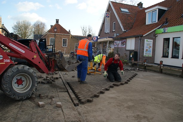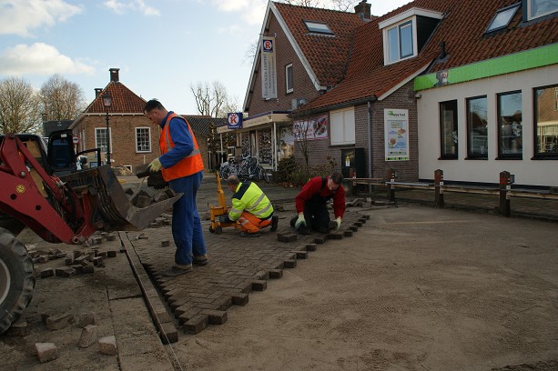 Ter hoogte van de cafetaria werd een gedeelte van het straatwerk eruit gehaald, om het vervolgens op te hogen met zand en het opnieuw te bestraten.