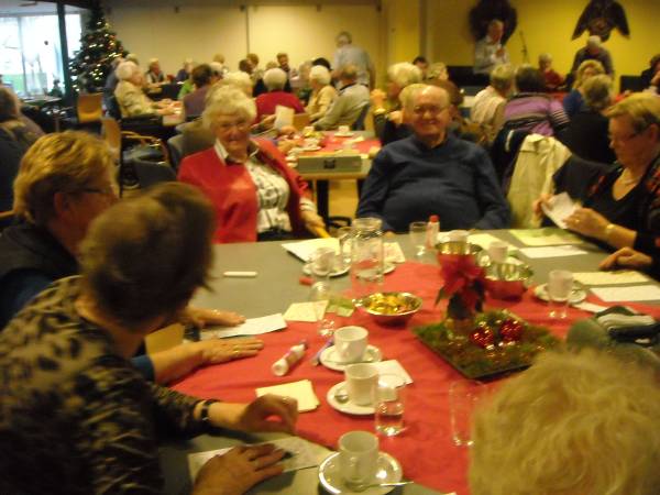 Woensdag 14 december werd er weer een zeer gezellige kerstbingo gehouden door Het Knooppunt.  Er werd druk gestipt en gekruist op de snel achterelkaar genoemde cijfers.