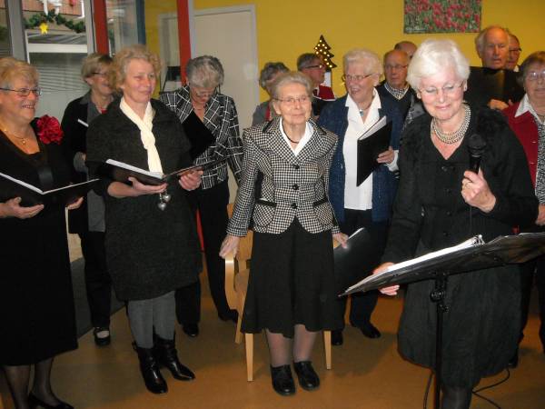 De bedenker/oprichter van dit koor, de 85- jarige Nettie Haaksma, zong met zichtbaar plezier uit volle borst mee.