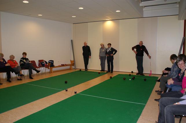 In de grote zaal in De Brede Vaart wordt er op twee banen gespeeld.