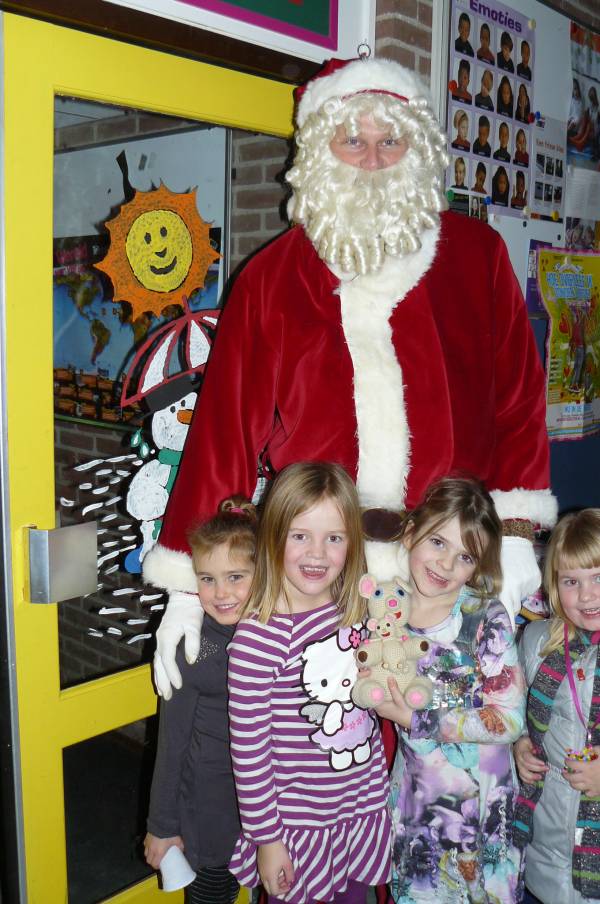 Er was een open podium, waar diverse groepjes kinderen optraden. Je kon op de foto. De Kerstman ontbrak uiteraard ook niet. In de aula kon de inwendige mens versterkt worden. De kinderen verkochten hun eigen gemaakte kerstwerkjes en natuurlijk werd ook de CD, waarop de door kinderen en personeel ingezongen kerstliedjes stonden, enthousiast verkocht.