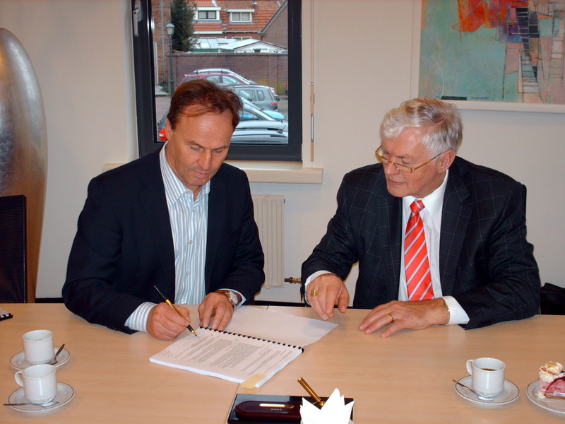Geplaatst op:09-01-2012 Bijgewerkt op:09-01-2012 16:14 Overeenkomst zonnepanelen getekendBron: redactie RSM Aad van der VeenBinnenkort krijgt het dak van het stadskantoor zonnepanelen. Op maandag 9 januari werd de overeenkomst getekend. Het stadskantoor wordt dankzij de zonnepanelen energieneutraal.Zen Duurzaam (Zonne Energie Nederland) uit Breda gaat de panelen leveren. Dit na een Europese aanbesteding. De ondertekening van de overeenkomst gebeurde door Hans Brekelmans van Zen Duurzaam en wethouder Vlaar namens de gemeente. Tevens waren aanwezig tijdens de ondertekening, een delegatie van de gemeente die het project begeleiden. Hans Brekelmans, directeur van ZEN ondertekend de overeenkomst. Wethoude Vlaar tekent namens de gemeenteGrote schaal Montfoort is een van de eerste gemeentes in Nederland die op een dergelijk grote schaal zonnepanelen gebruikt voor het stadskantoor. Het hele dak van het stadskantoor zal met 340 panelen worden bedekt.