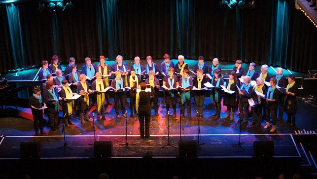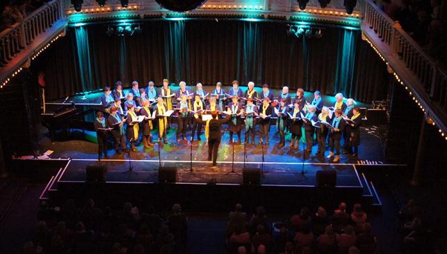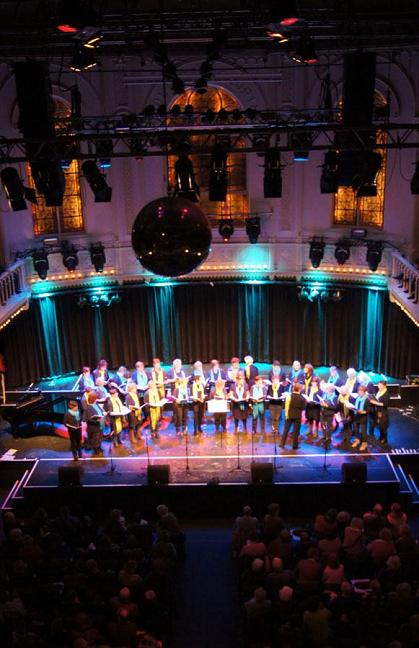 In een overvolle grote zaal mocht het koor zich presenteren op hetzelfde podium waar bekende en minder bekende popsterren normaal gesproken van zich laten horen.