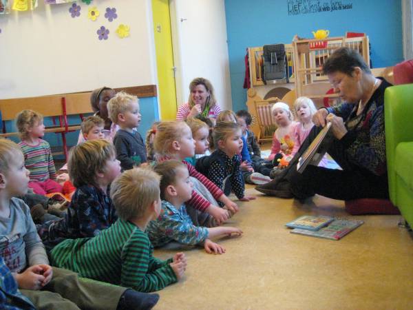 Geplaatst op:20-01-2012 Bijgewerkt op:20-01-2012 11:32 Voorleesontbijt bij Dikkie Dik in MontfoortBron: John van Hoeven, Afgelopen donderdag 19 januari hebben heeft Kinderdagverblijf Dikkie Dik meegedaan aan het Nationale Voorleesontbijt.De kinderen waren blij verrast met de voorlezer en voormalig pedagogisch medewerker, Mieke Callaars. Zij las voor uit het prentenboek Mama kwijt van Chris Haughton, dat is uitgeroepen tot prentenboek van het jaar 2012. In pyjama lagen de peuters en medewerkers ademloos te luisteren naar het verhaal. Onder het genot van een uitgebreid ontbijt werd er volop nagesproken over het uiltje dat zijn mama kwijt was.