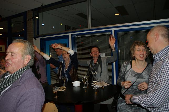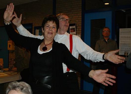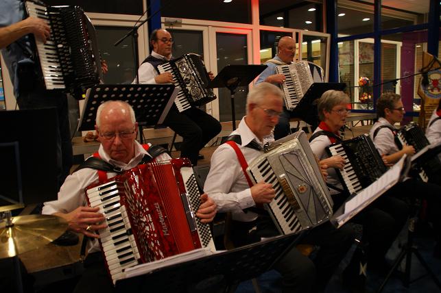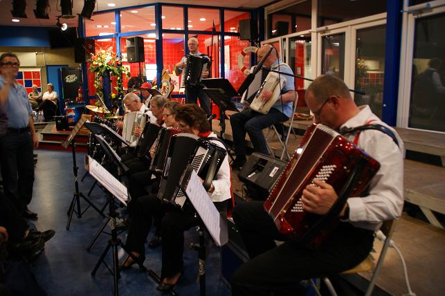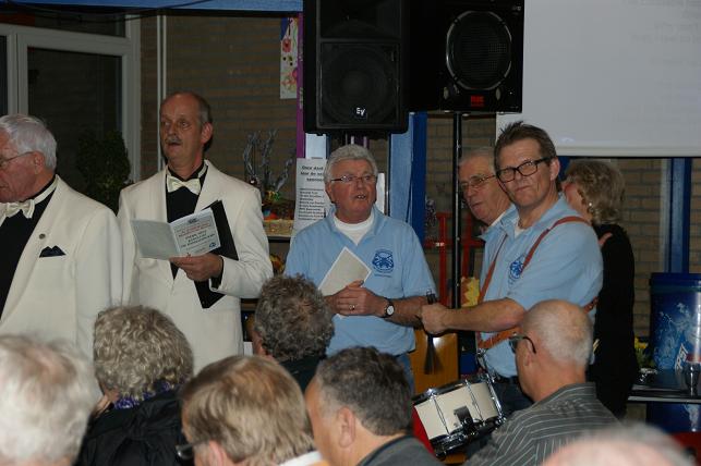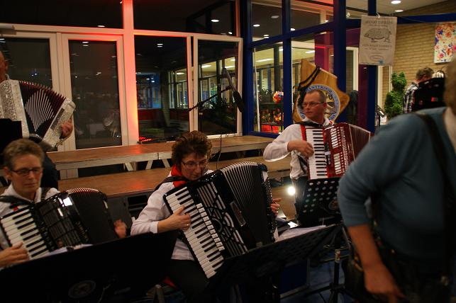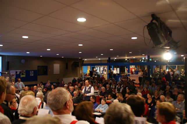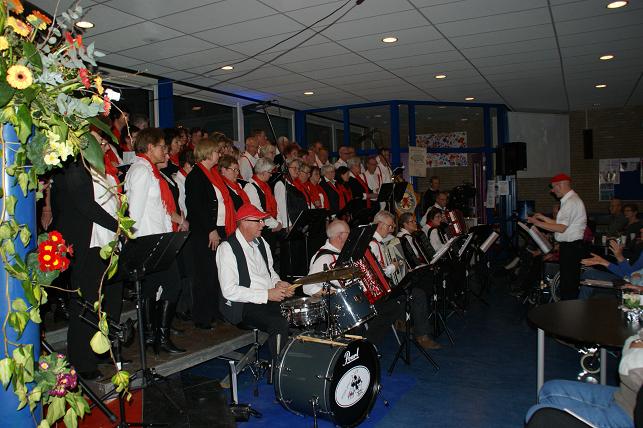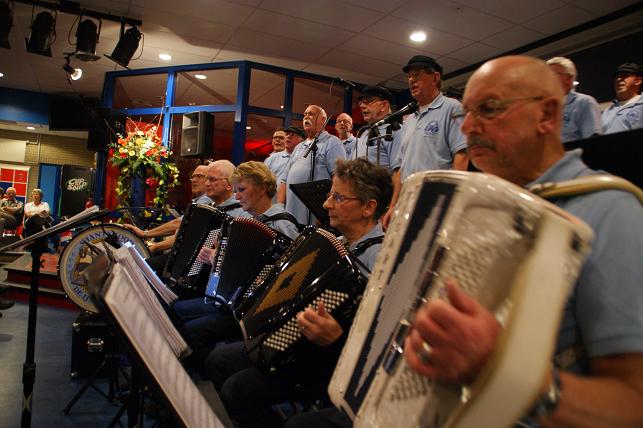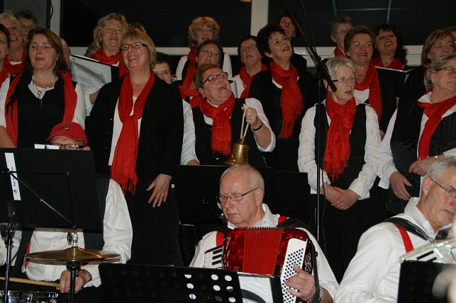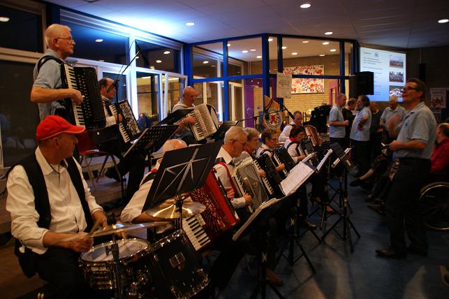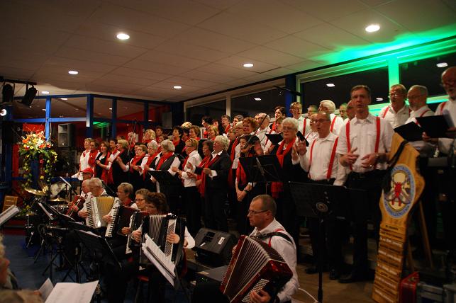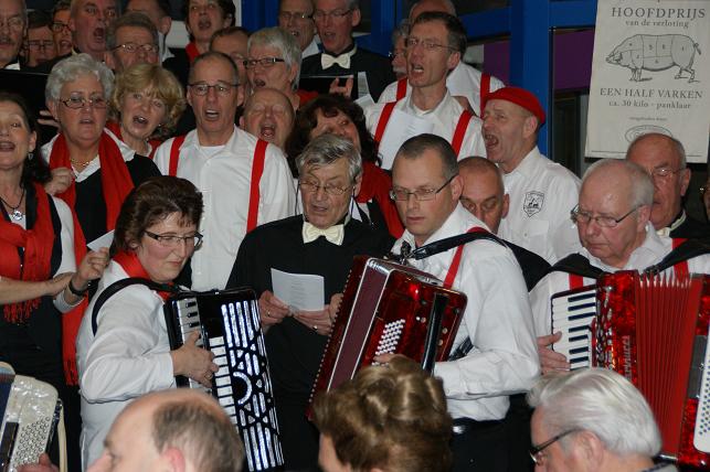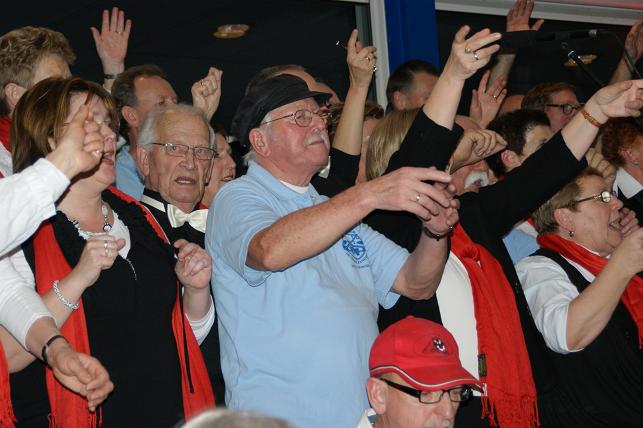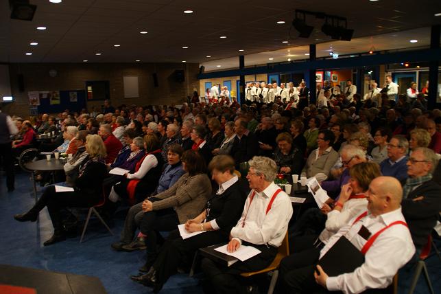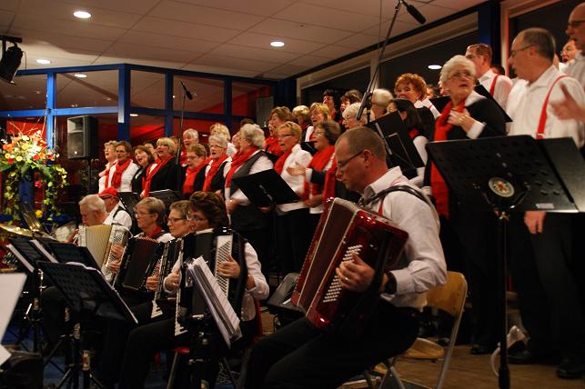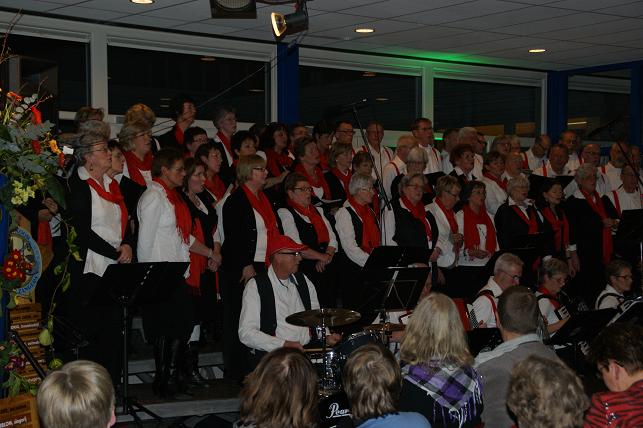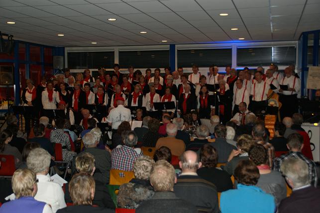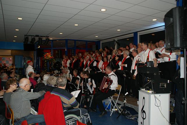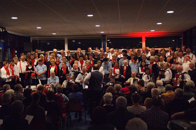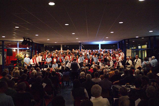 Om de pauze muzikaal op te luisteren kwamen de muzikanten van alle koren bijeen en speelden zij gezellige meezingers.