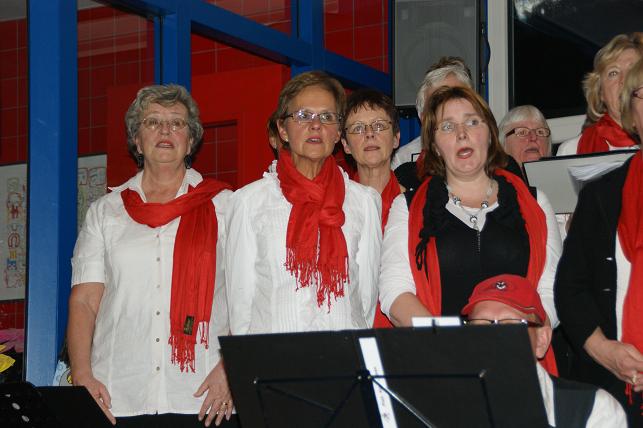 Als laatste kwamen alle koren op het podium voor een samenzang. Er werden drie liederen gezongen, 'Droomland', 'Sloop John B.' en 'Sierra Madre del Sur'.