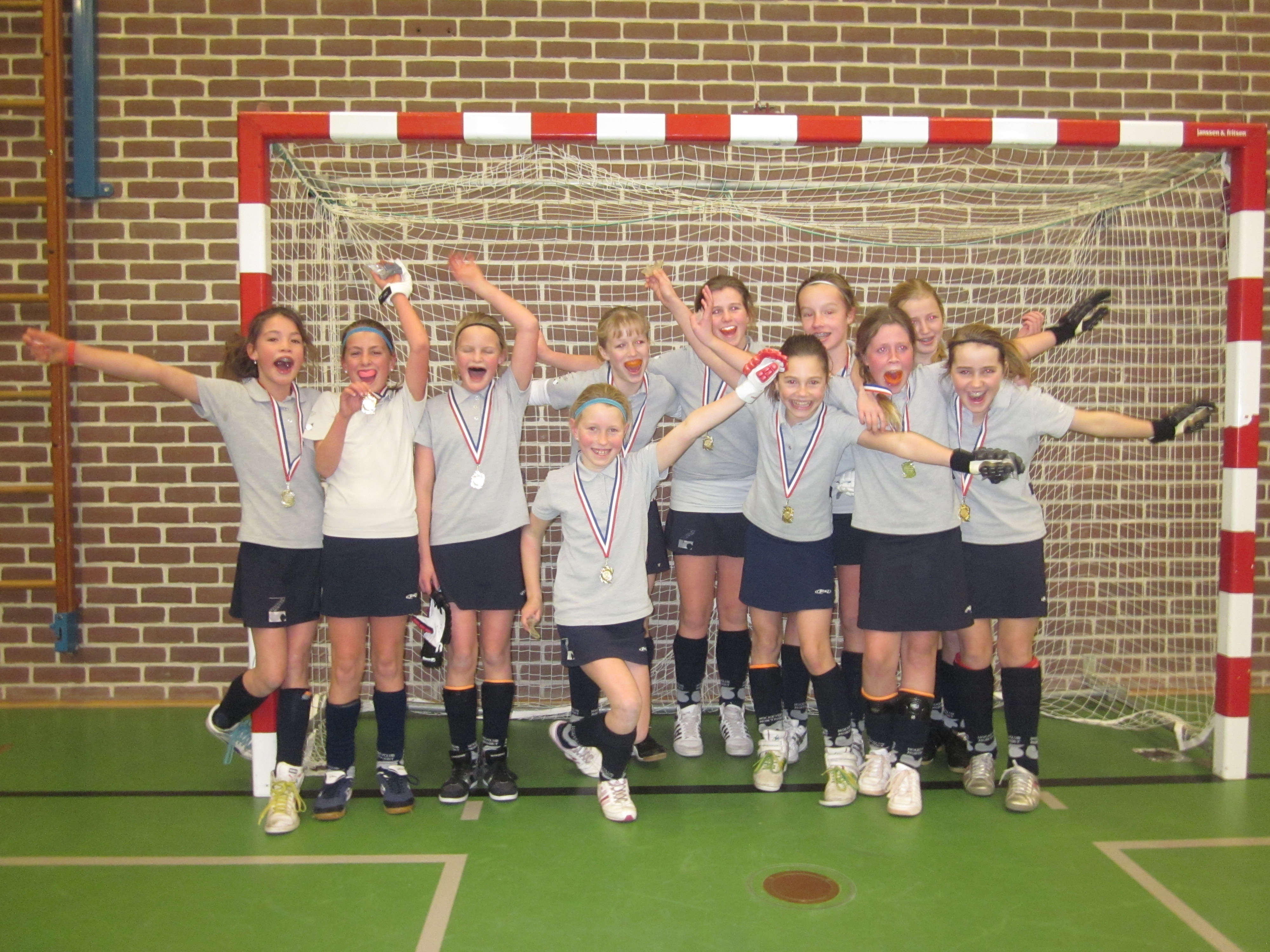 Een kampioens feestje voor de hockeymeiden van de D1 Montfoort. De meiden van D1 speelden dit jaar voor het eerst zaalhockey. Hoewel dit voor iedereen nog onbekend terrein was werd er vooral veel gewonnen.