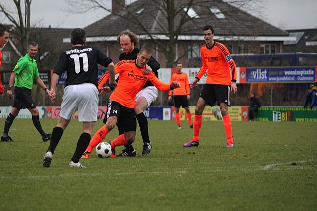 De wedstrijd stond onder leiding van scheidsrechter Roeleveld uit Vinkeveen en al na 1 minuut was er het eerste opstootje, dat een kaart opleverde voor de gedreven Bilal Laoikili. De toon was gezet, maar het doelpunt viel even later aan de andere kant. De communicatie in de laatste lijn was even weg en het was Hielke Penterman, die zijn ploeg op voorsprong bracht.