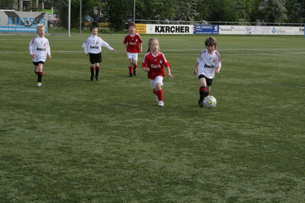 Maar nee hoor, onder leiding van coach Birgit en Patrick wist Liverpool zichzelf nog 1 keer te herpakken en de stand werd weer omgebogen naar een gelijk stand van 6-6. Zou er dan toch een verlenging komen ?. Nee, zo ver liet AC Milan het vandaag niet komen. Met nog 2 treffers van Sten werd de eindstand 8-6, waarbij Sten en Robin alle doelpunten voor hun rekening namen.