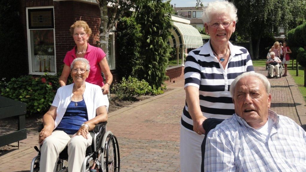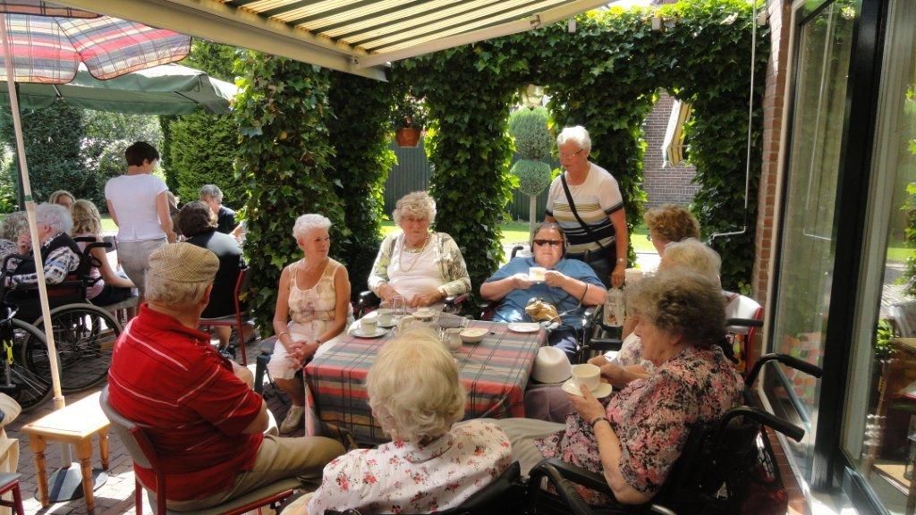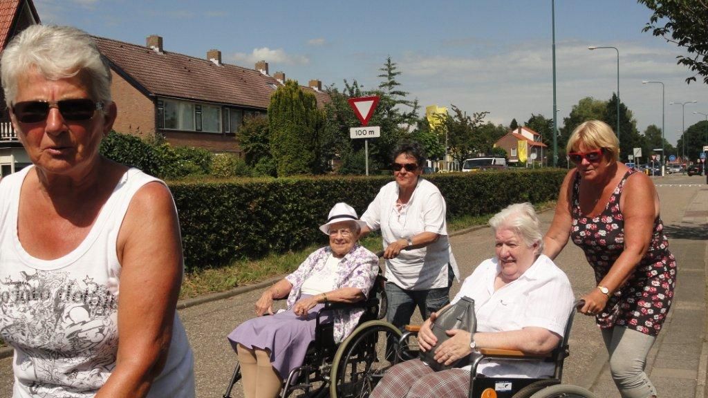Dankzij de inzet van vrijwilligers van de zonnebloem, en twee tienermeisjes, was het extra genieten van het schaarse mooie weer.
